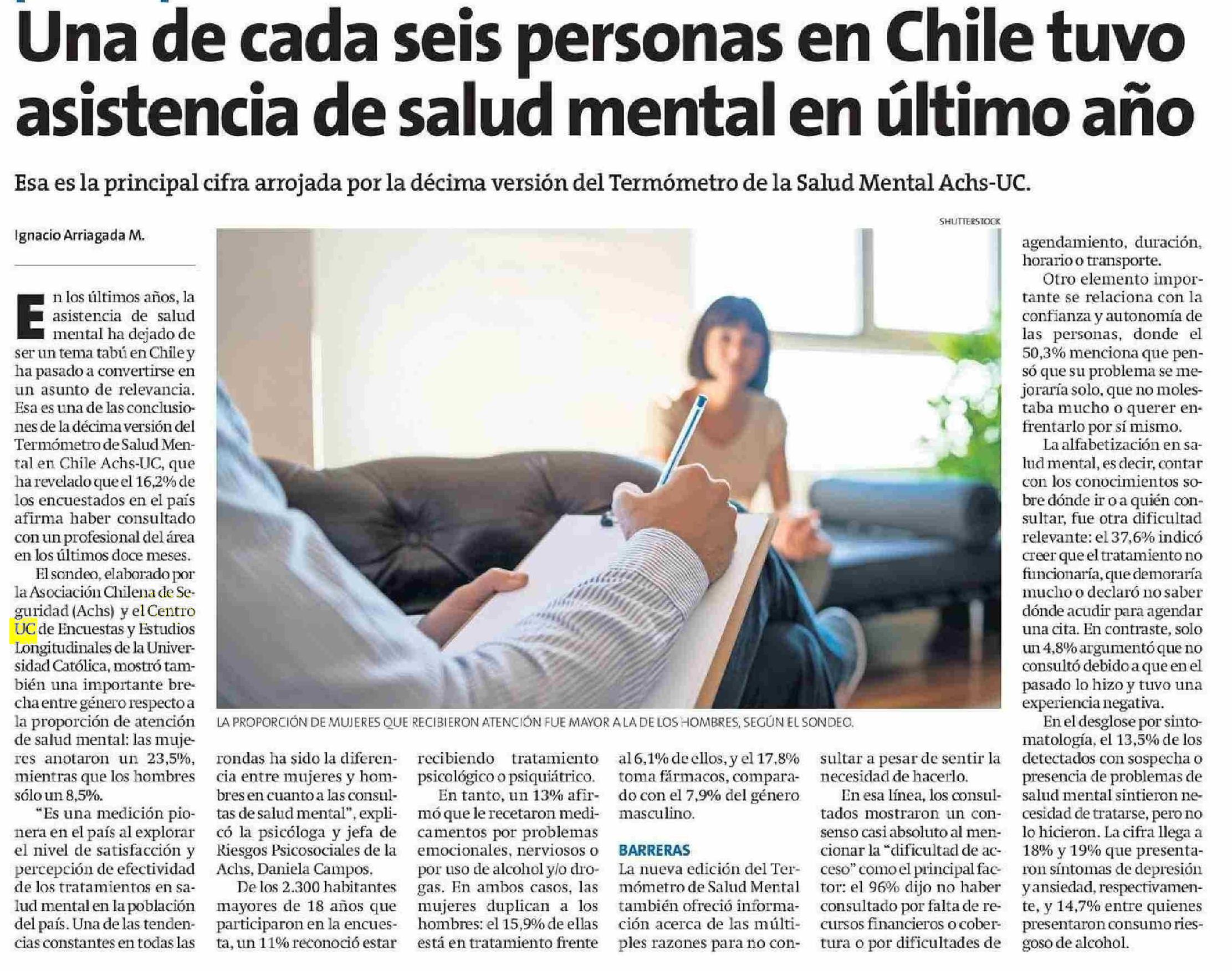 Una de cada seis personas en Chile tuvo asistencia de salud mental en último año