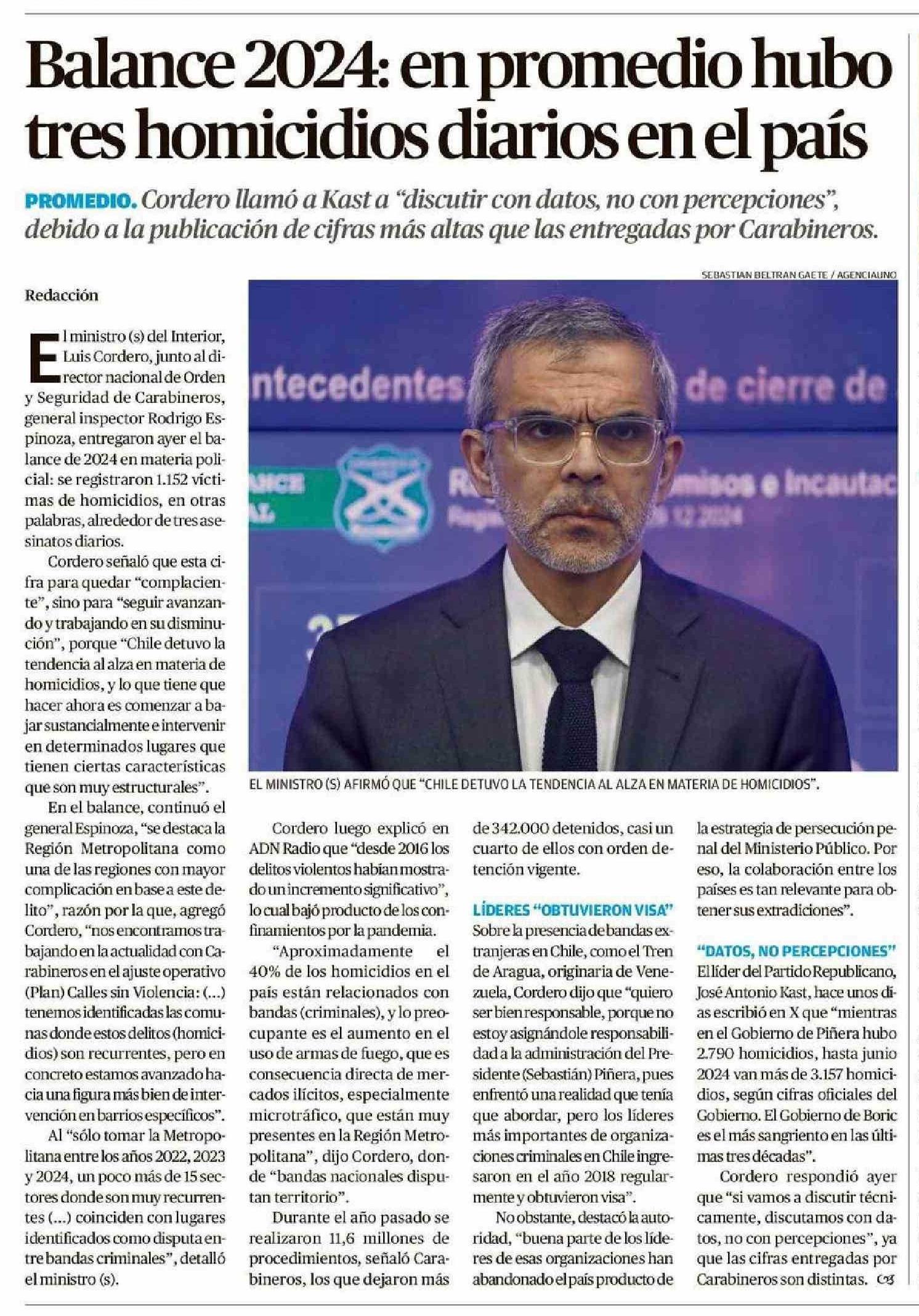 Balance 2024: en promedio hubo tres homicidios diarios en el país