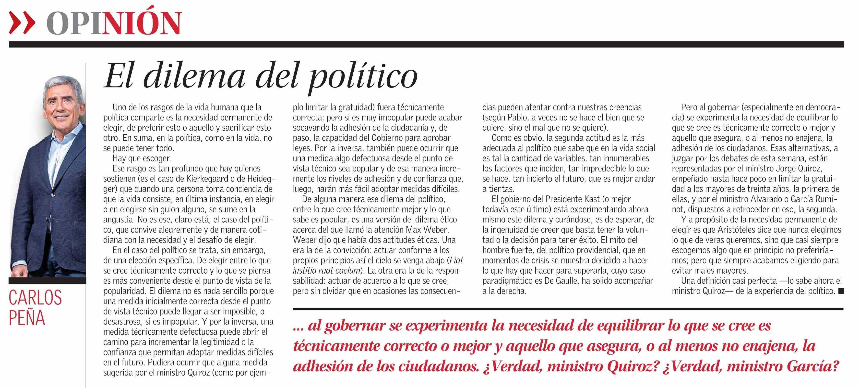 Columnas de Opinión: El dilema del político