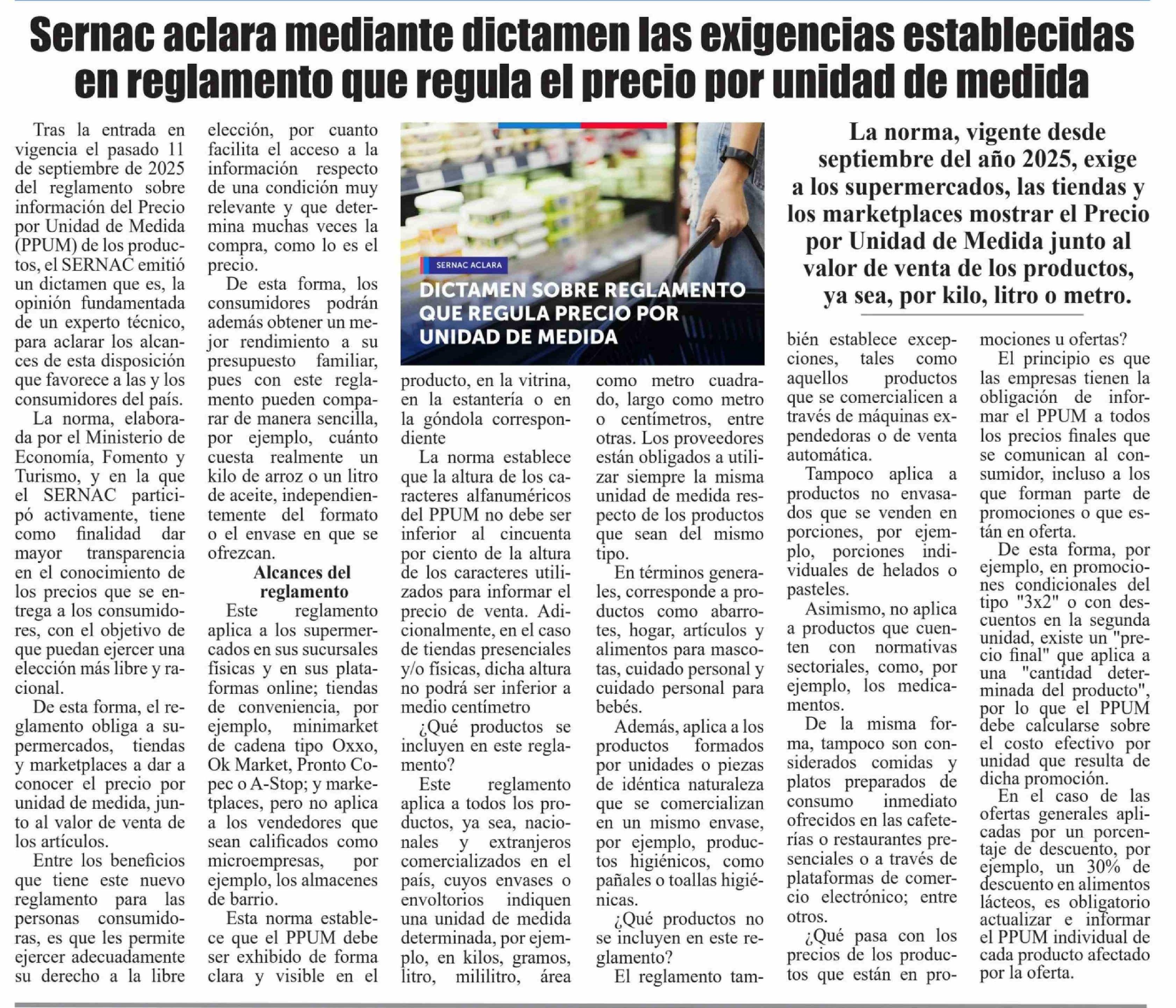 Título: Sernac aclara mediante dictamen las exigencias establecidas en reglamento que regula el precio por unidad de medida