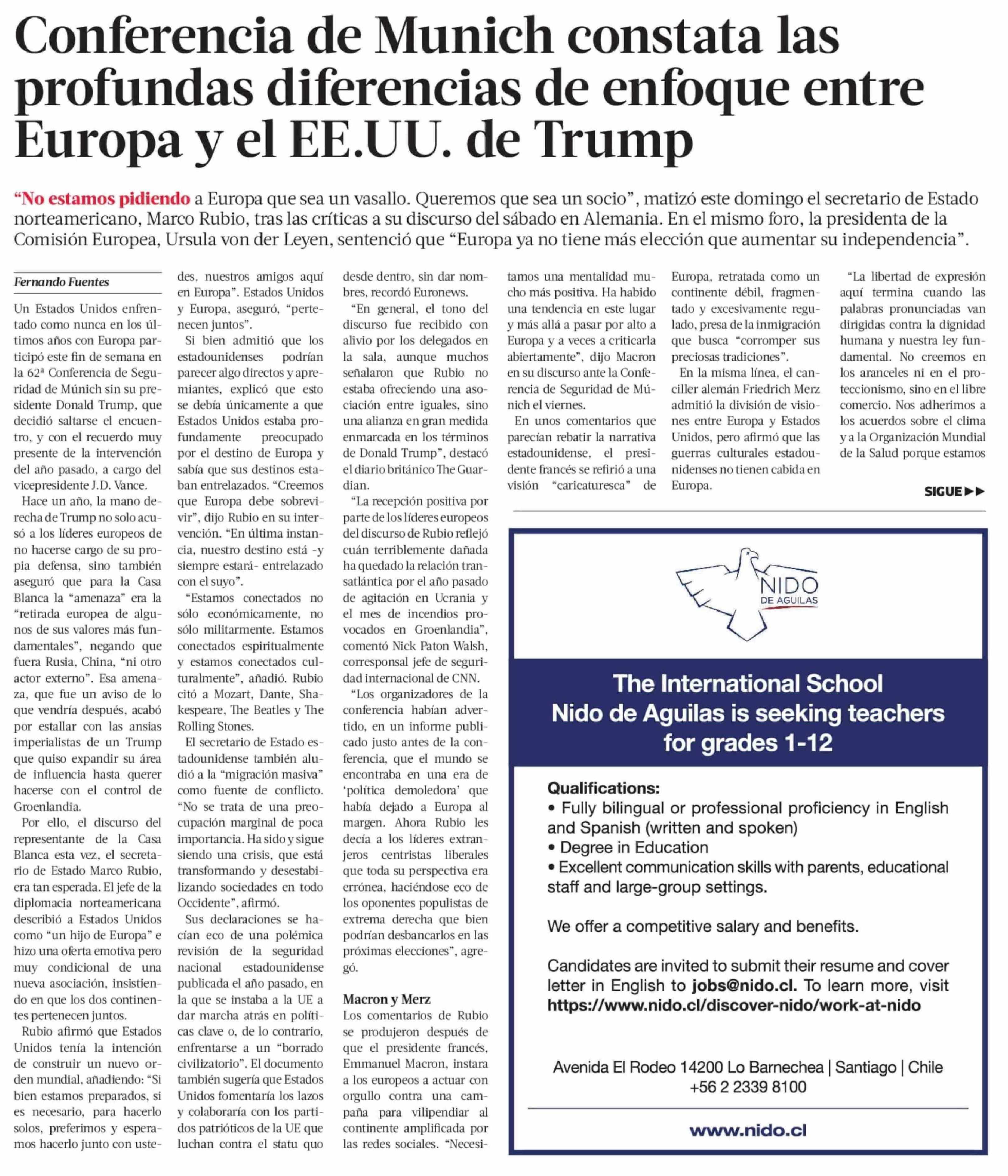 Conferencia de Munich constata las profundas diferencias de enfoque entre Europa y el EE.UU. de Trump
