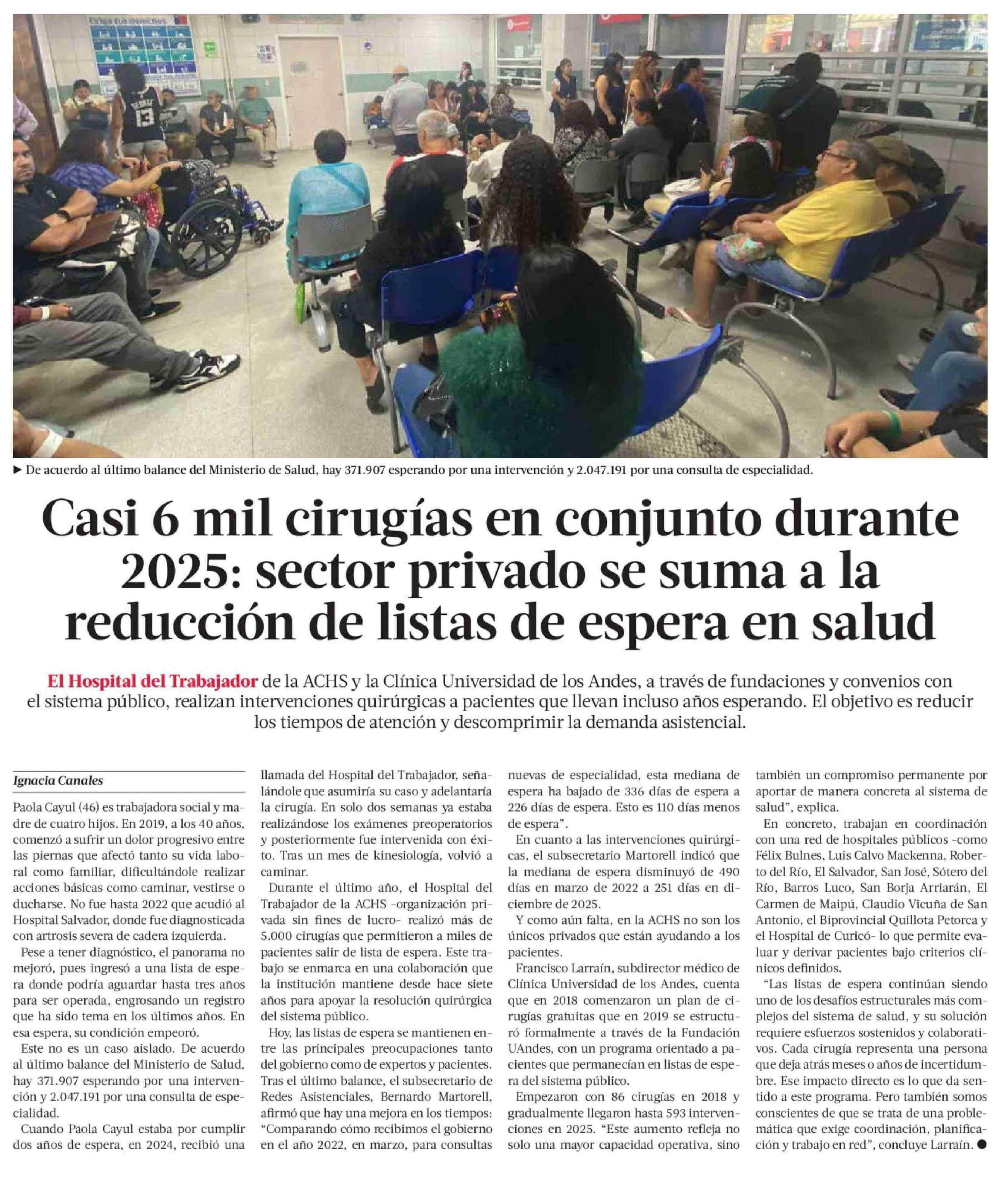 Casi 6 mil cirugías en conjunto durante 2025: sector privado se suma a la reducción de listas de espera en salud