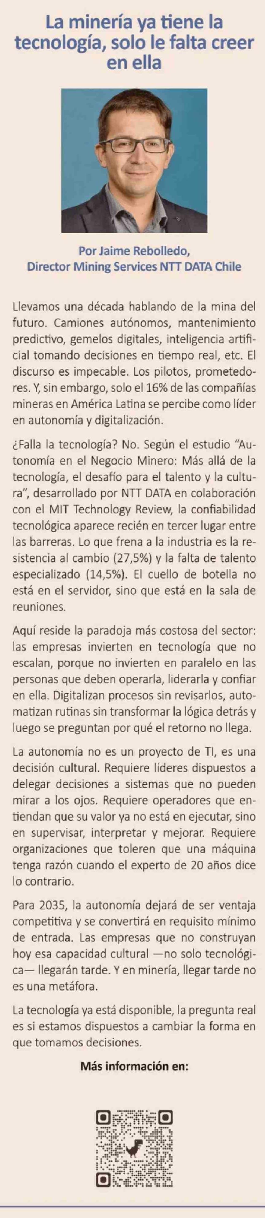 Columnas de Opinión: La minería ya tiene la tecnología, solo le falta creer en ella
