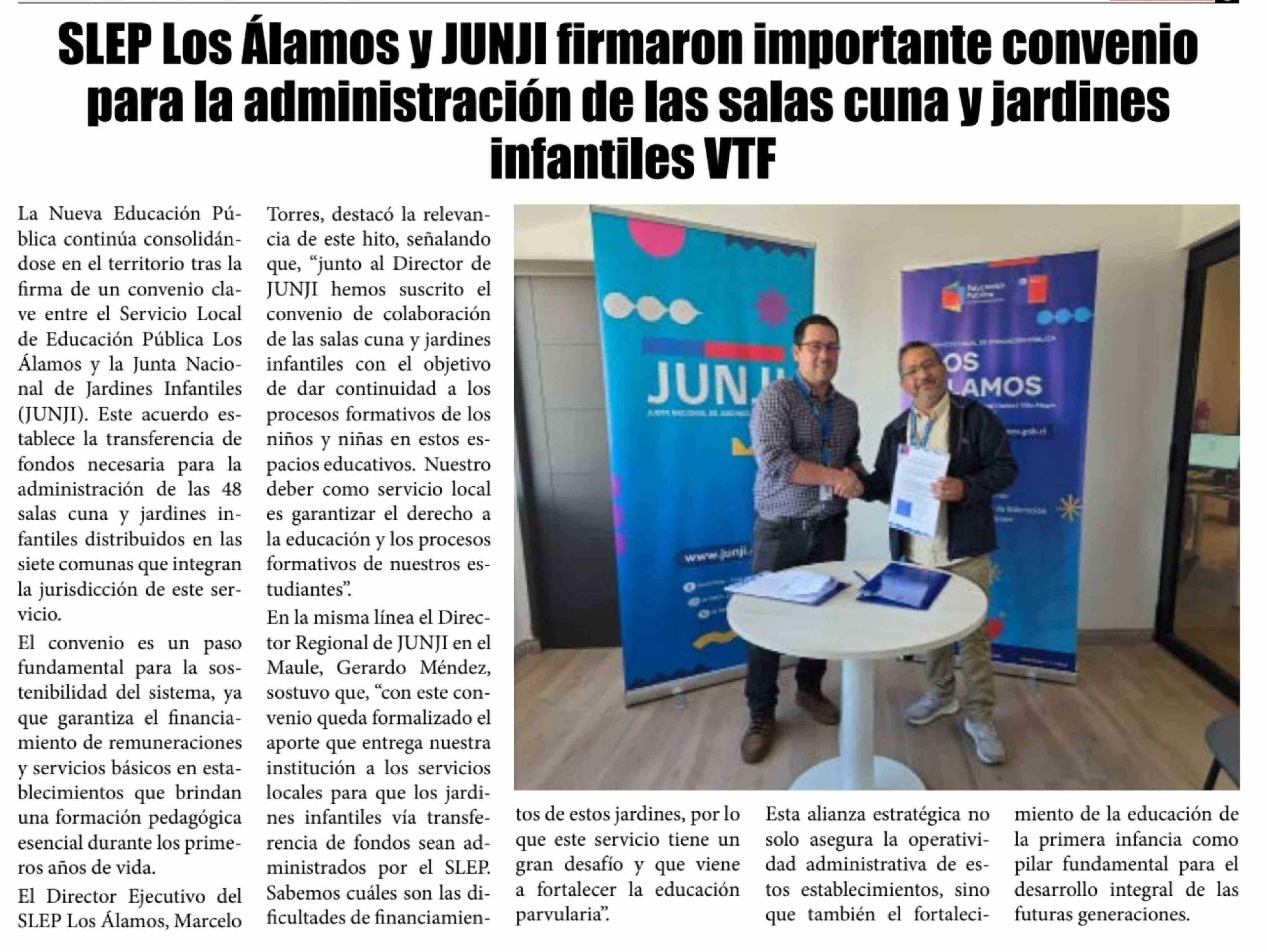 SLEP Los Alamos y JUNJI firmaron importante convenio para la administración de las salas cuna y jardines infantiles VTF