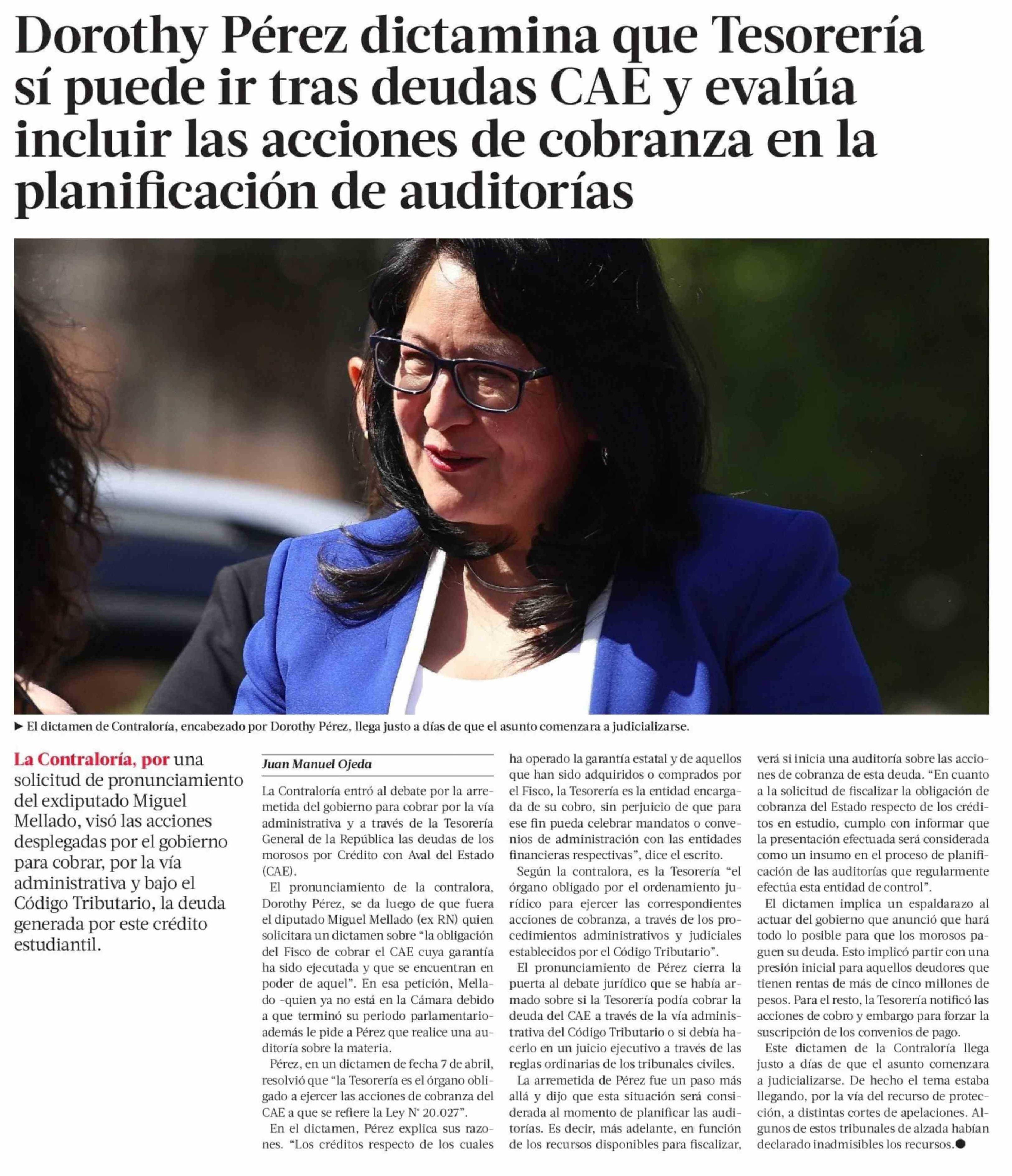 Dorothy Pérez dictamina que Tesorería sí puede ir tras deudas CAE y evalúa incluir las acciones de cobranza en la planificación de auditorías
