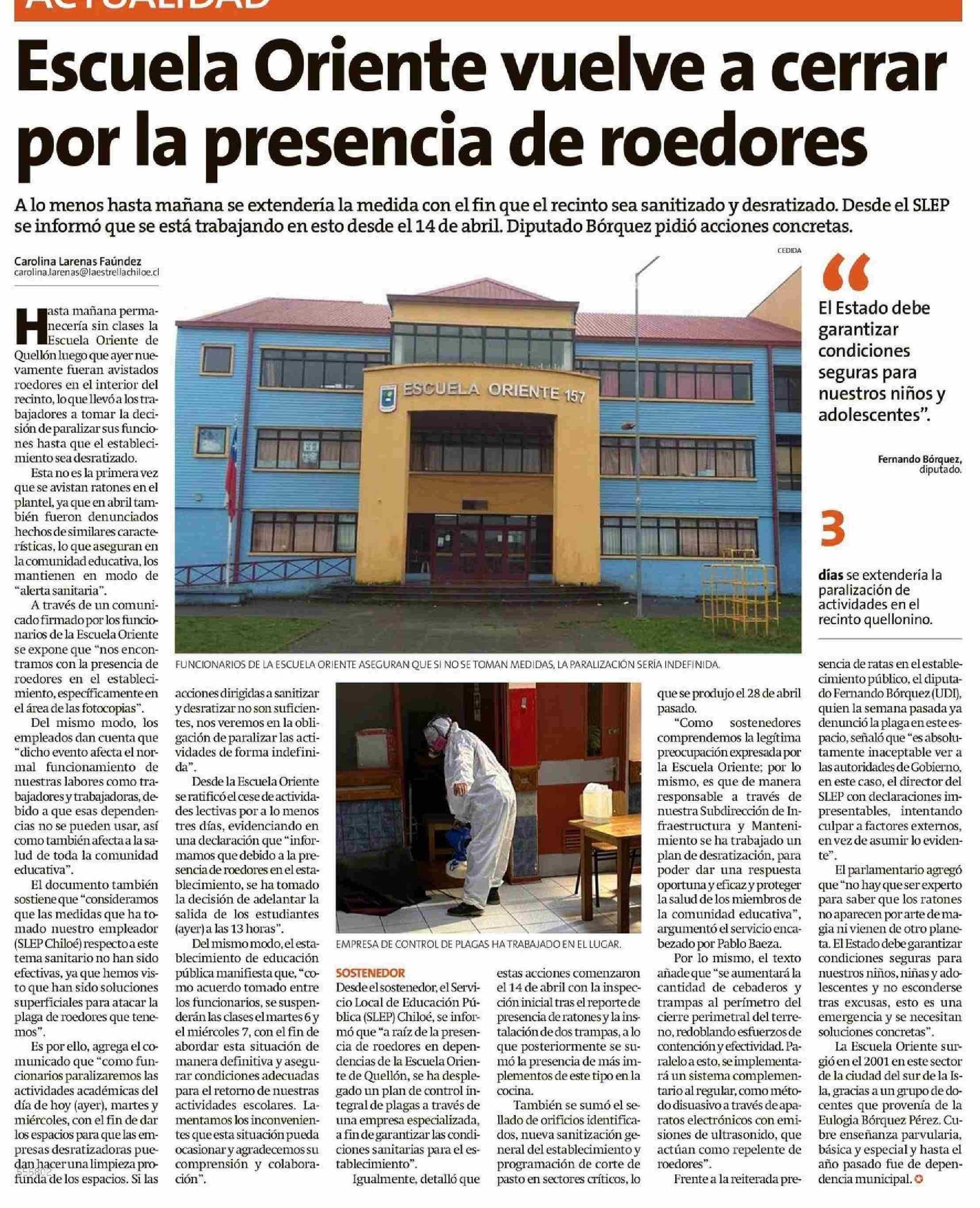 Escuela Oriente vuelve a cerrar por la presencia de roedores