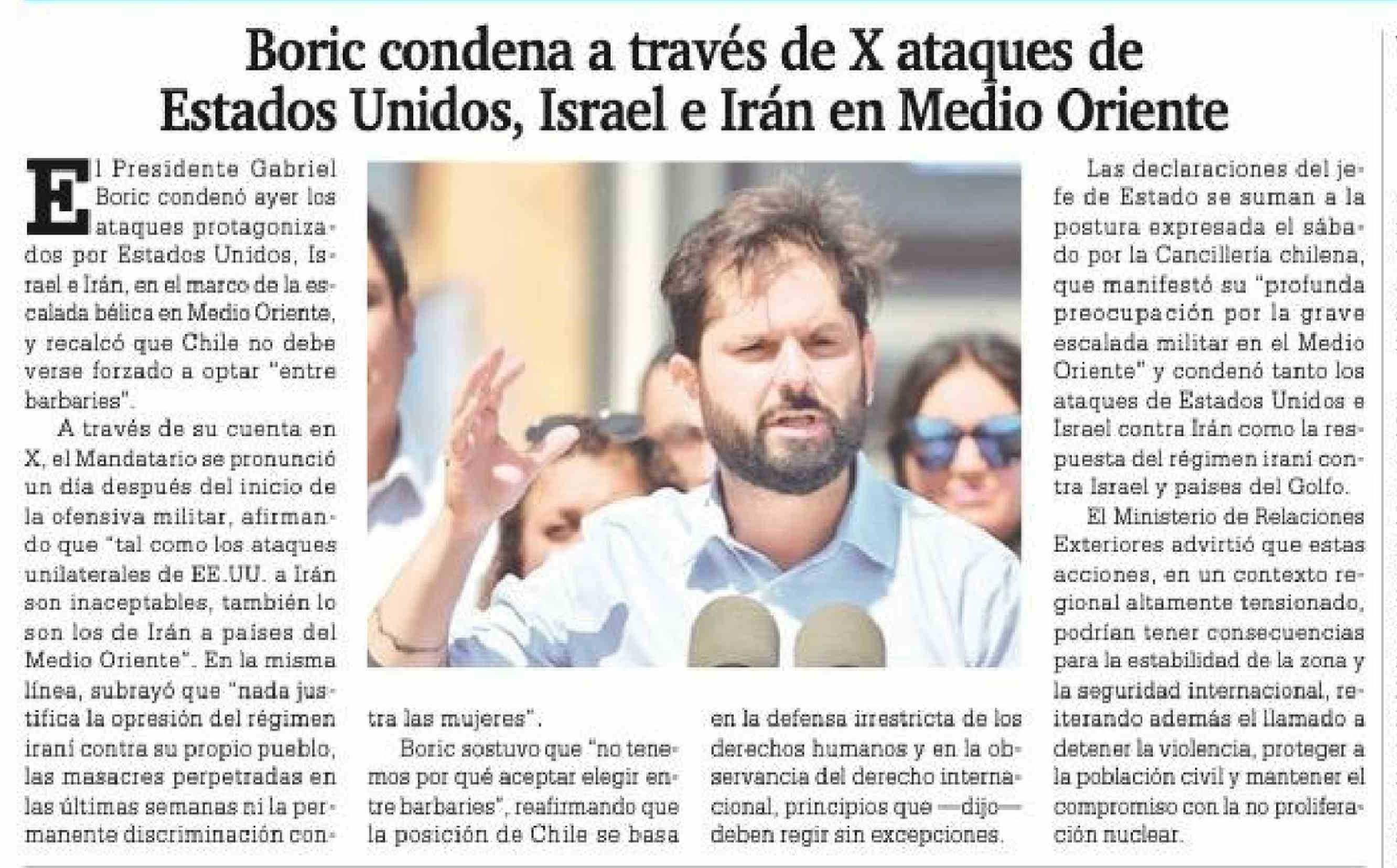 Boric condena a través de X ataques de Estados Unidos, Israel e Irán en Medio Oriente