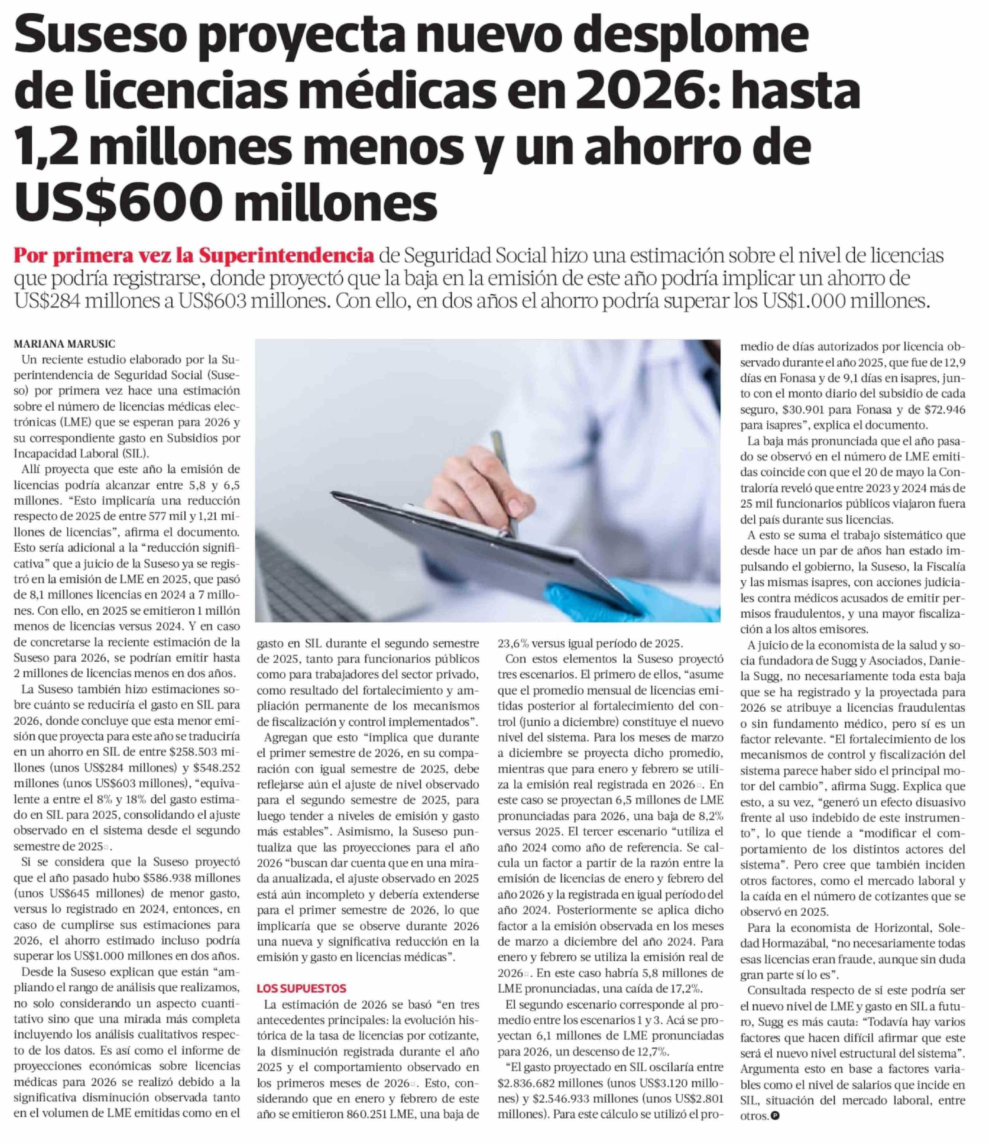 Suseso proyecta nuevo desplome de licencias médicas en 2026: hasta 1,2 millones menos y un ahorro de US$600 millones