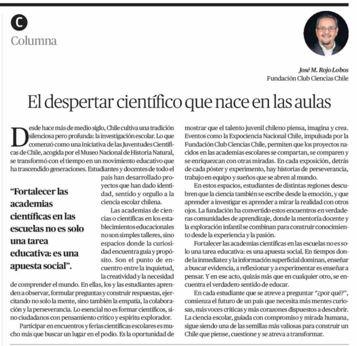 Columnas de Opinión: El despertar científico que nace en las aulas