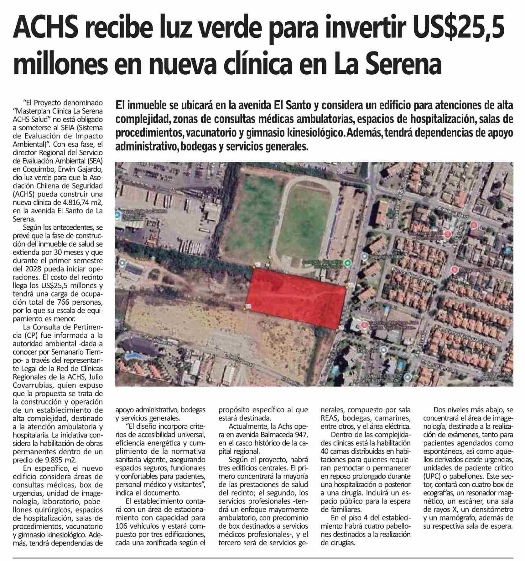 ACHS recibe luz verde para invertir US$25,5 millones en nueva clínica en La Serena