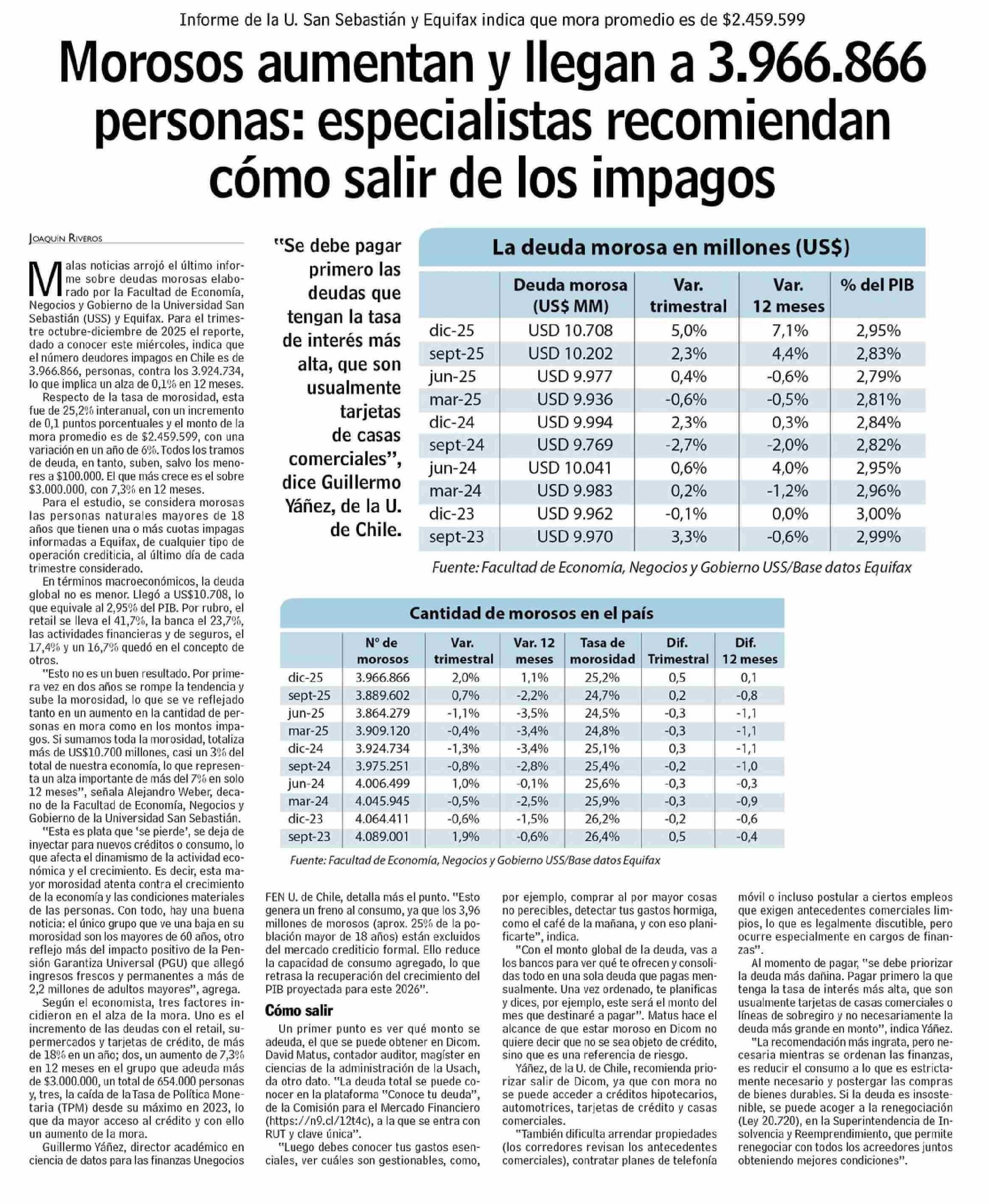 Morosos aumentan y llegan a 3.966.866 personas: especialistas recomiendan cómo salir de los impagos