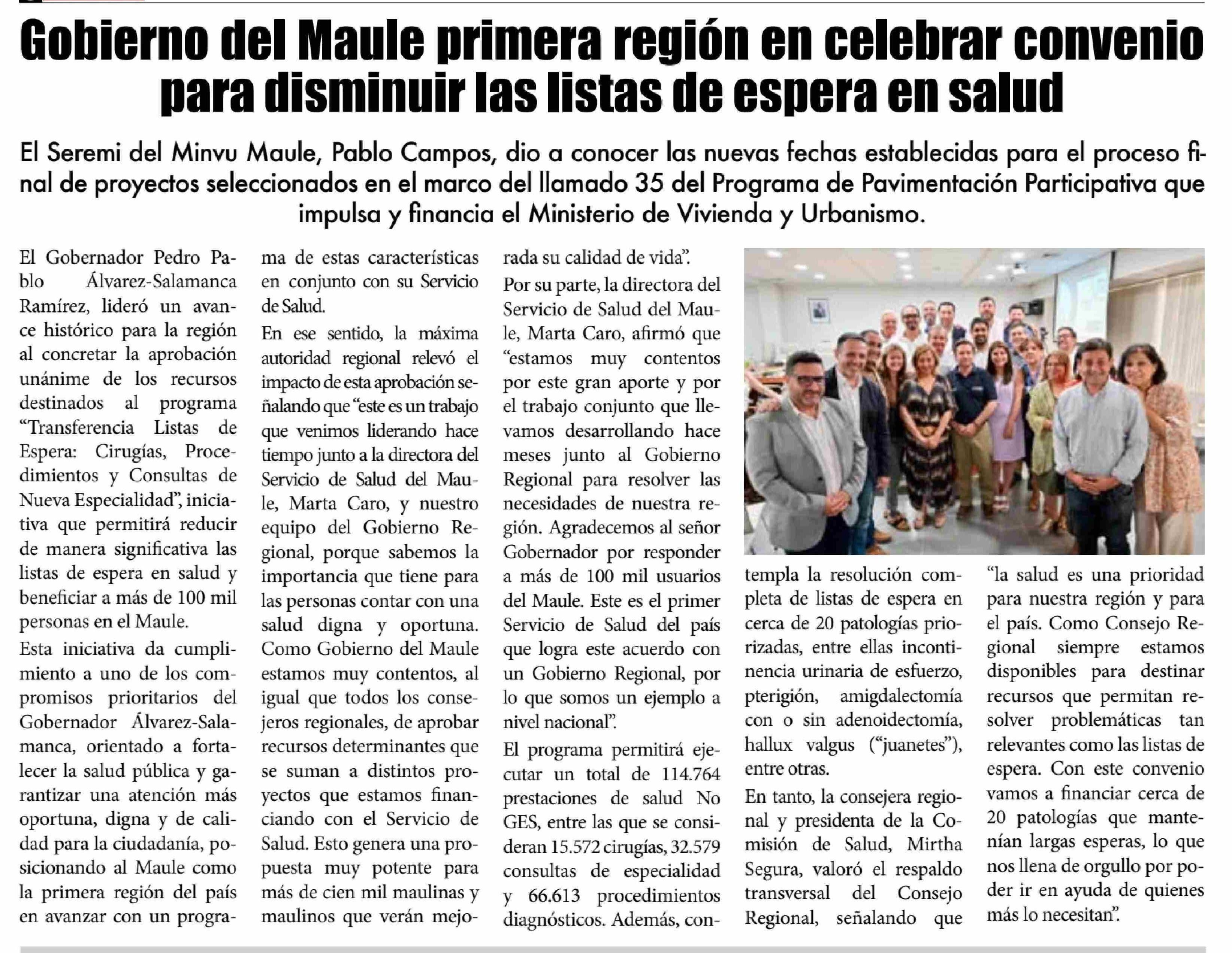 Gobierno del Maule primera región en celebrar convenio para disminuir las listas de espera en salud