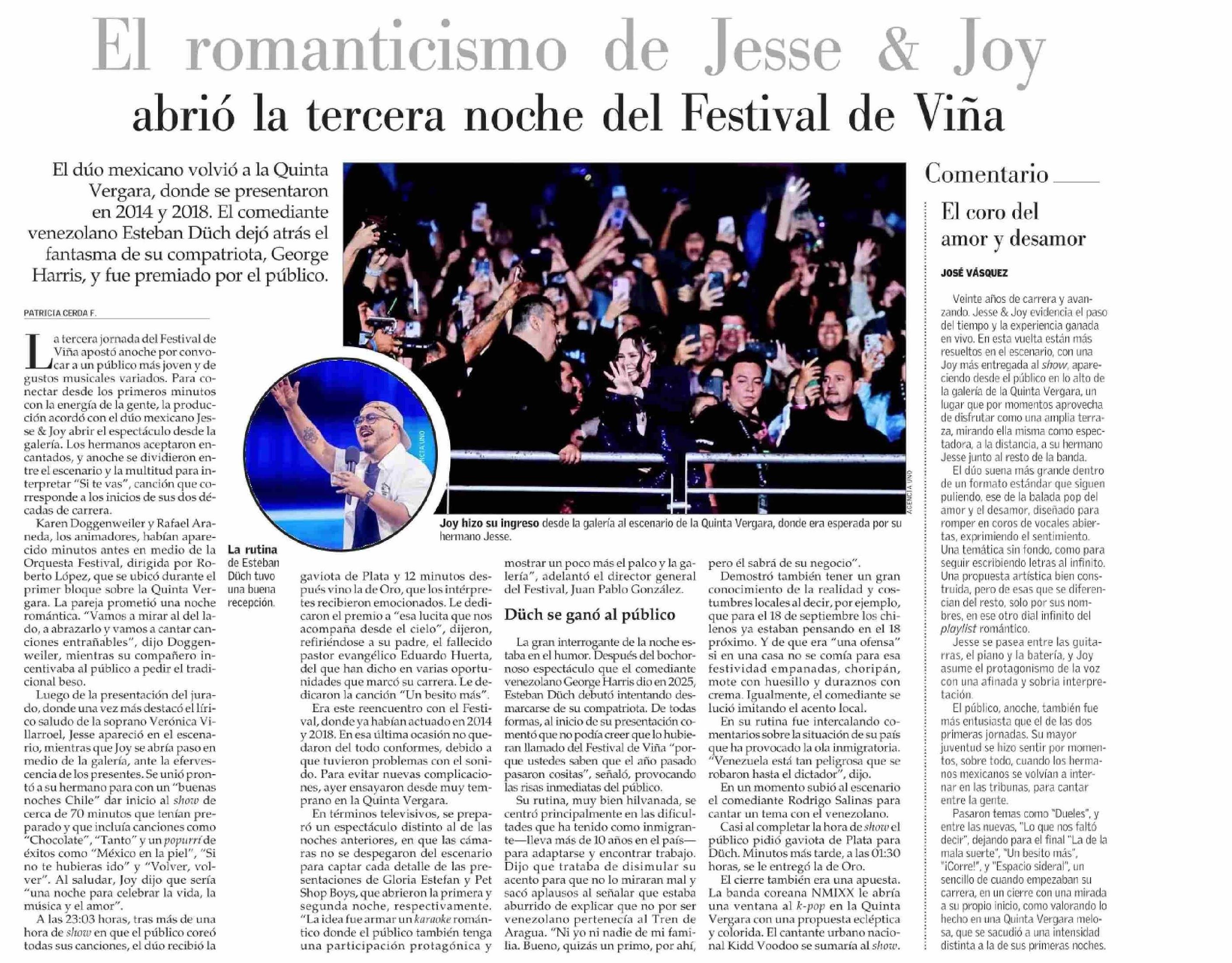 El romanticismo de Jesse & Joy abrió la tercera noche del Festival de Viña