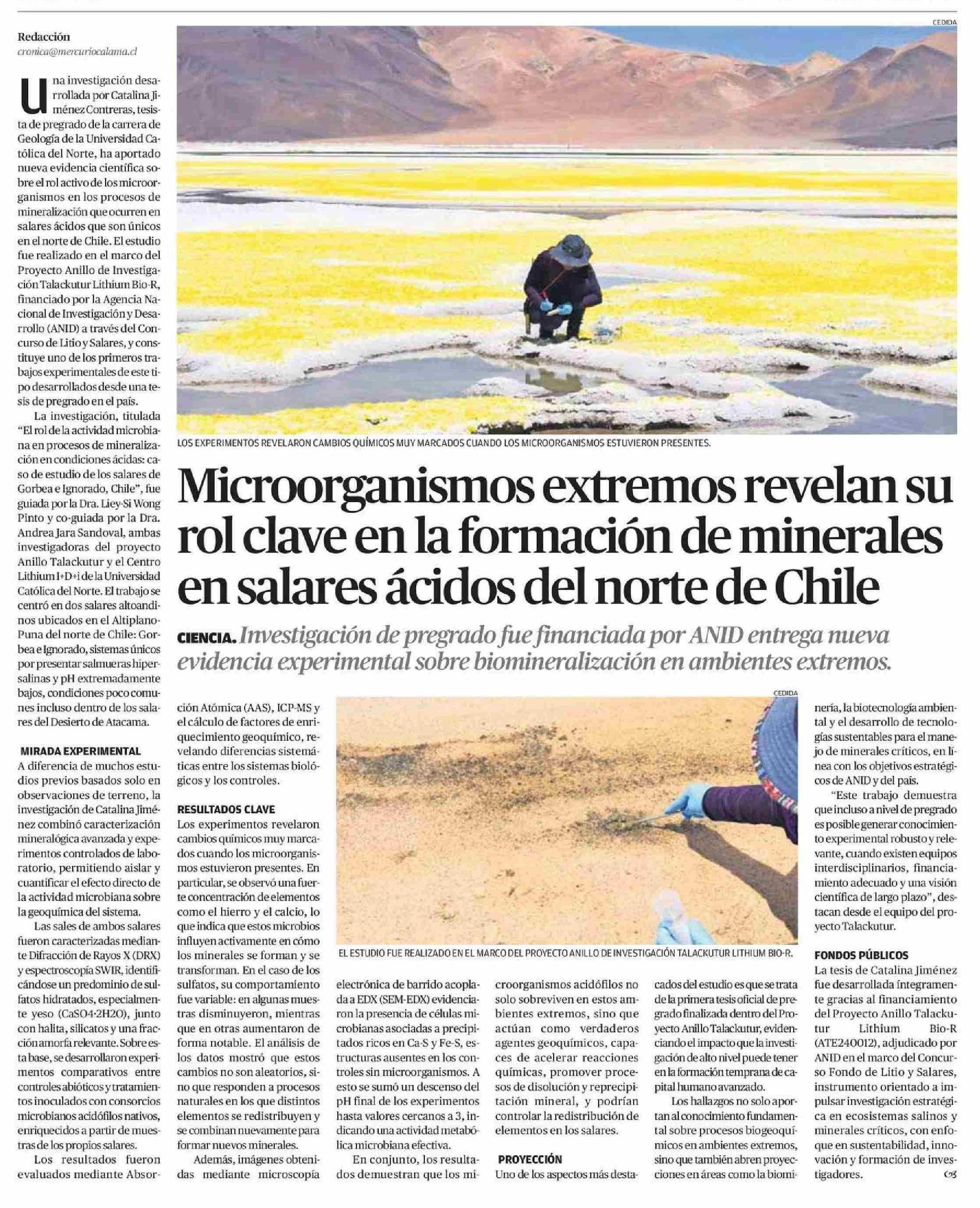 Microorganismos extremos revelan su rol clave en la formación de minerales en salares ácidos del norte de Chile