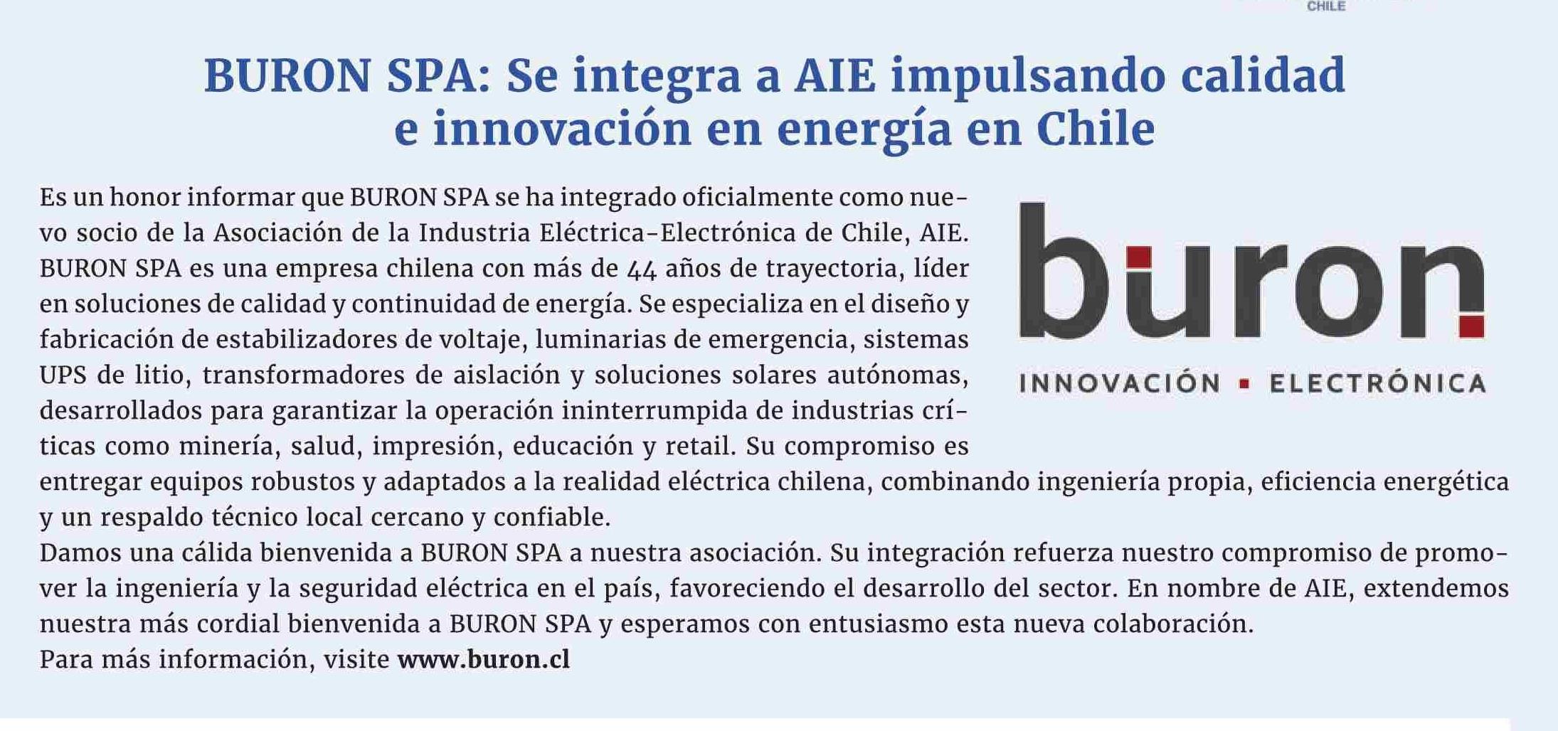BURON SPA: Se integra a ATE impulsando calidad e innovación en energía en Chile