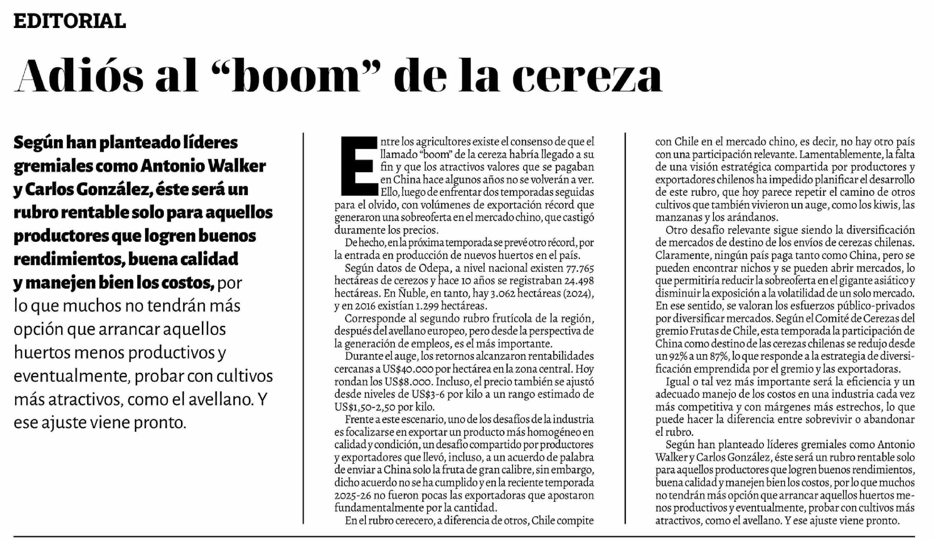 Editorial: Adiós al "boom" de la cereza