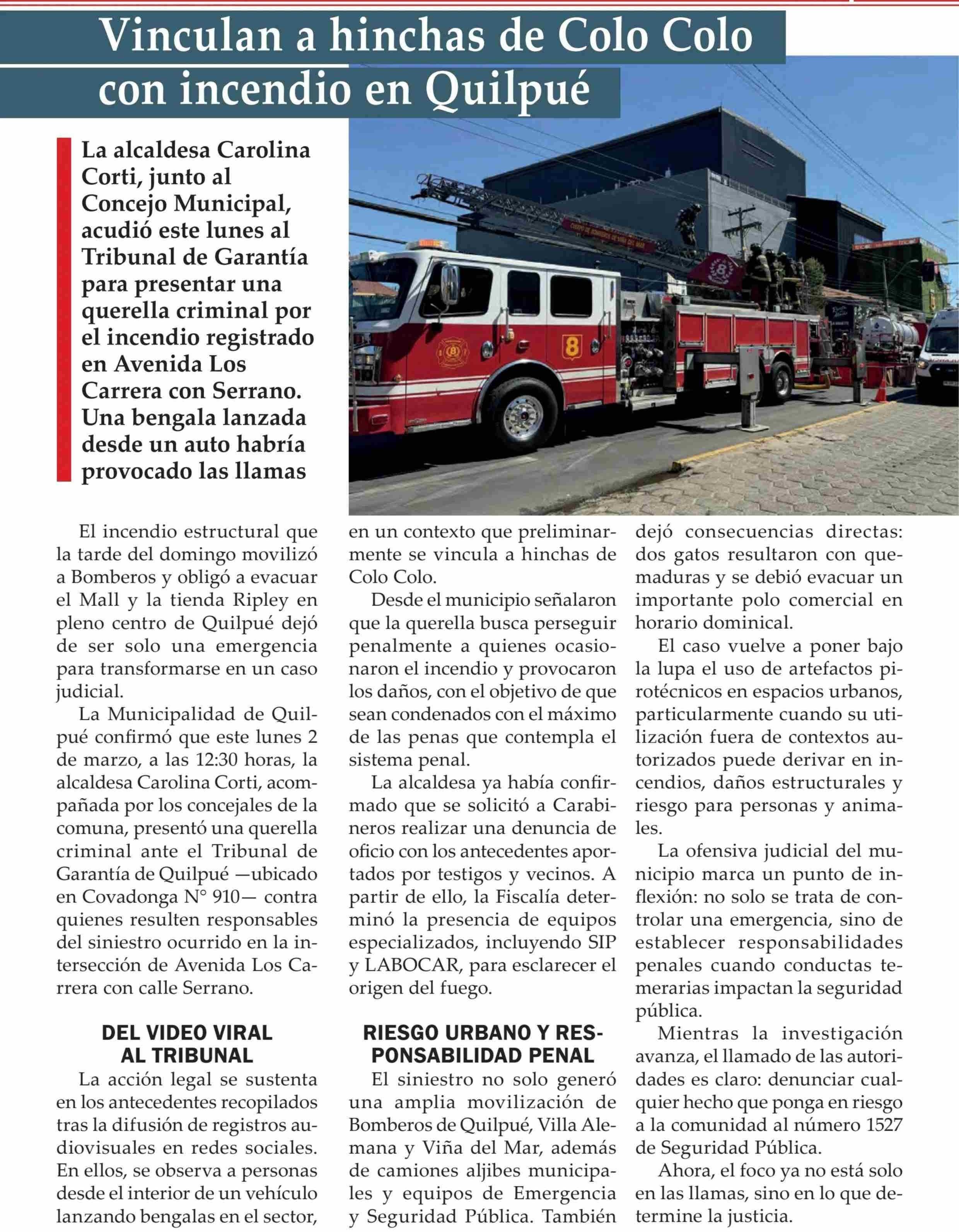 Vinculan a hinchas de Colo Colo con incendio en Quilpué