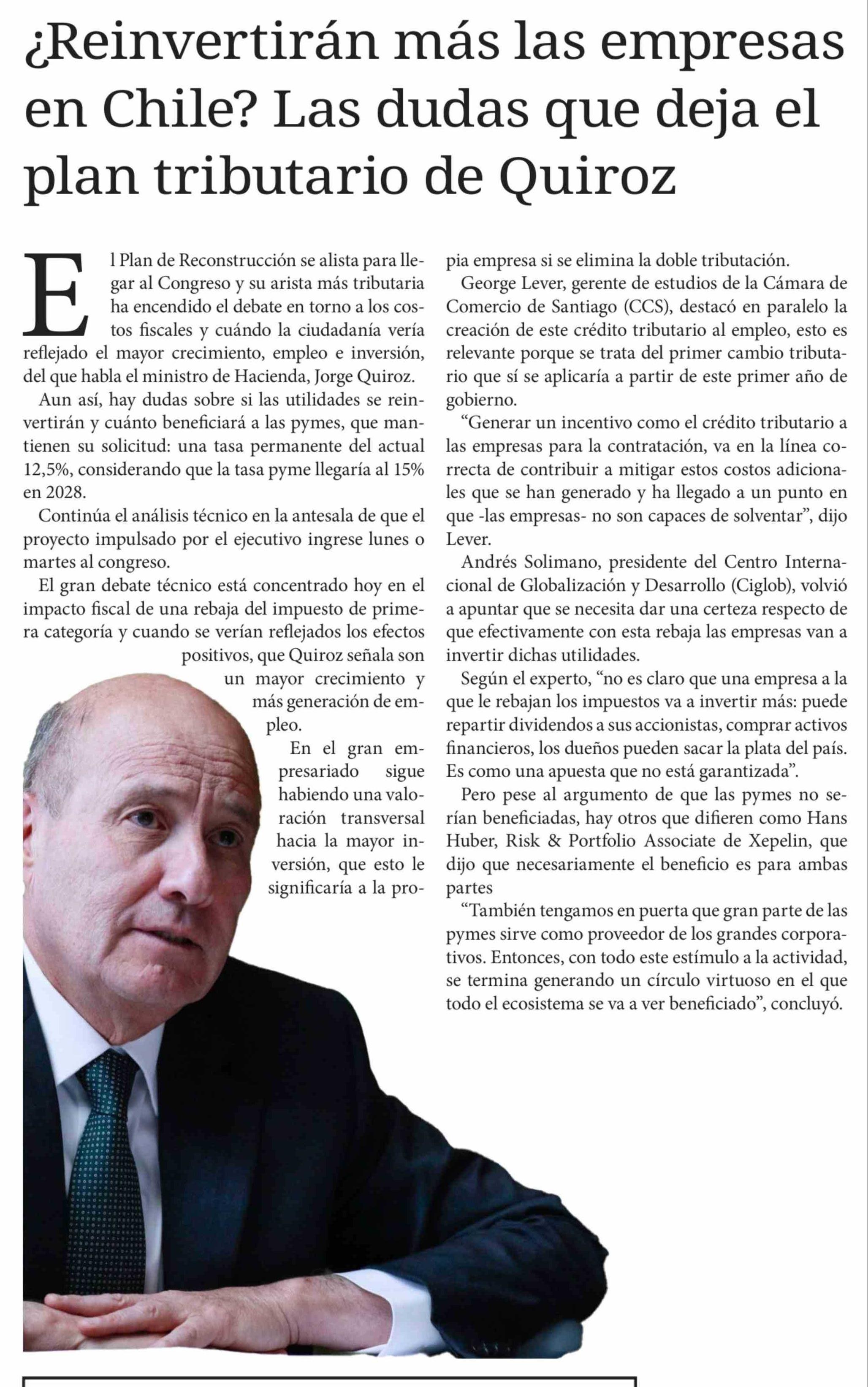 ¿Reinvertirán más las empresas en Chile? Las dudas que deja el plan tributario de Quiroz