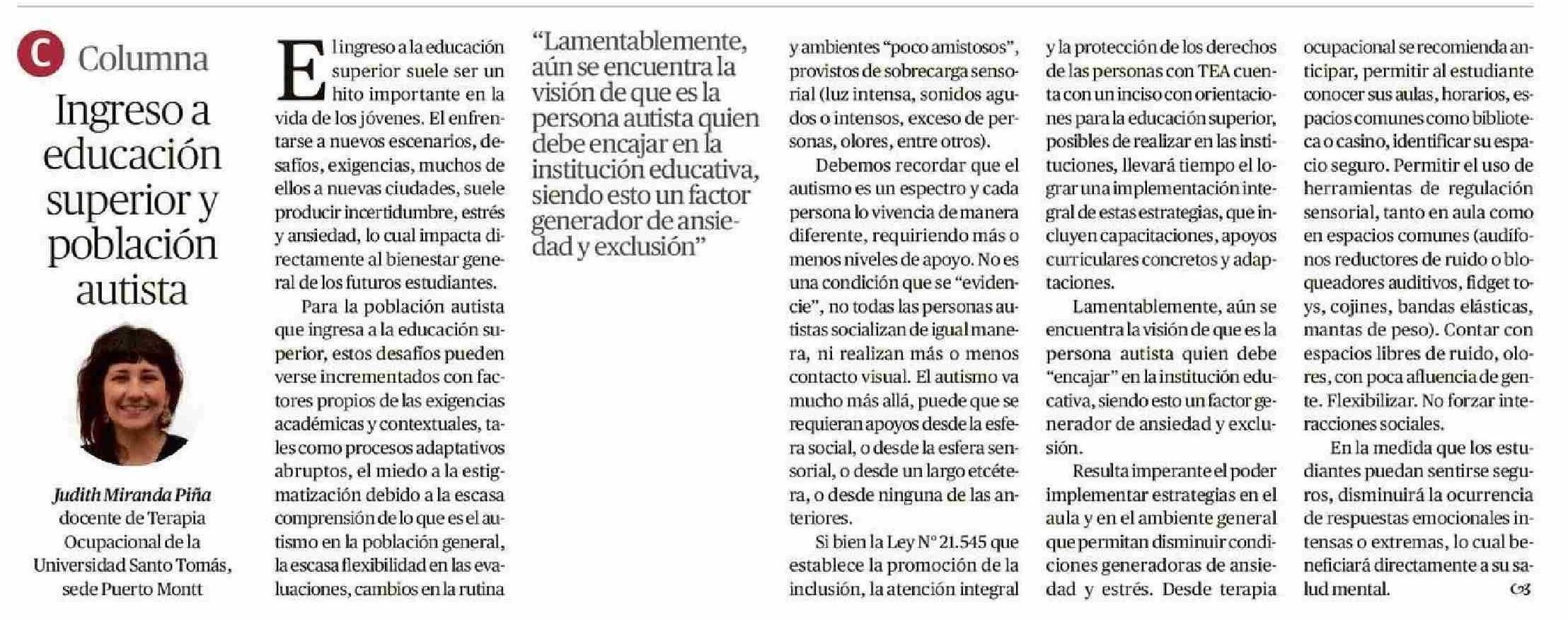 Columnas de Opinión: Ingreso a educación superior y población autista