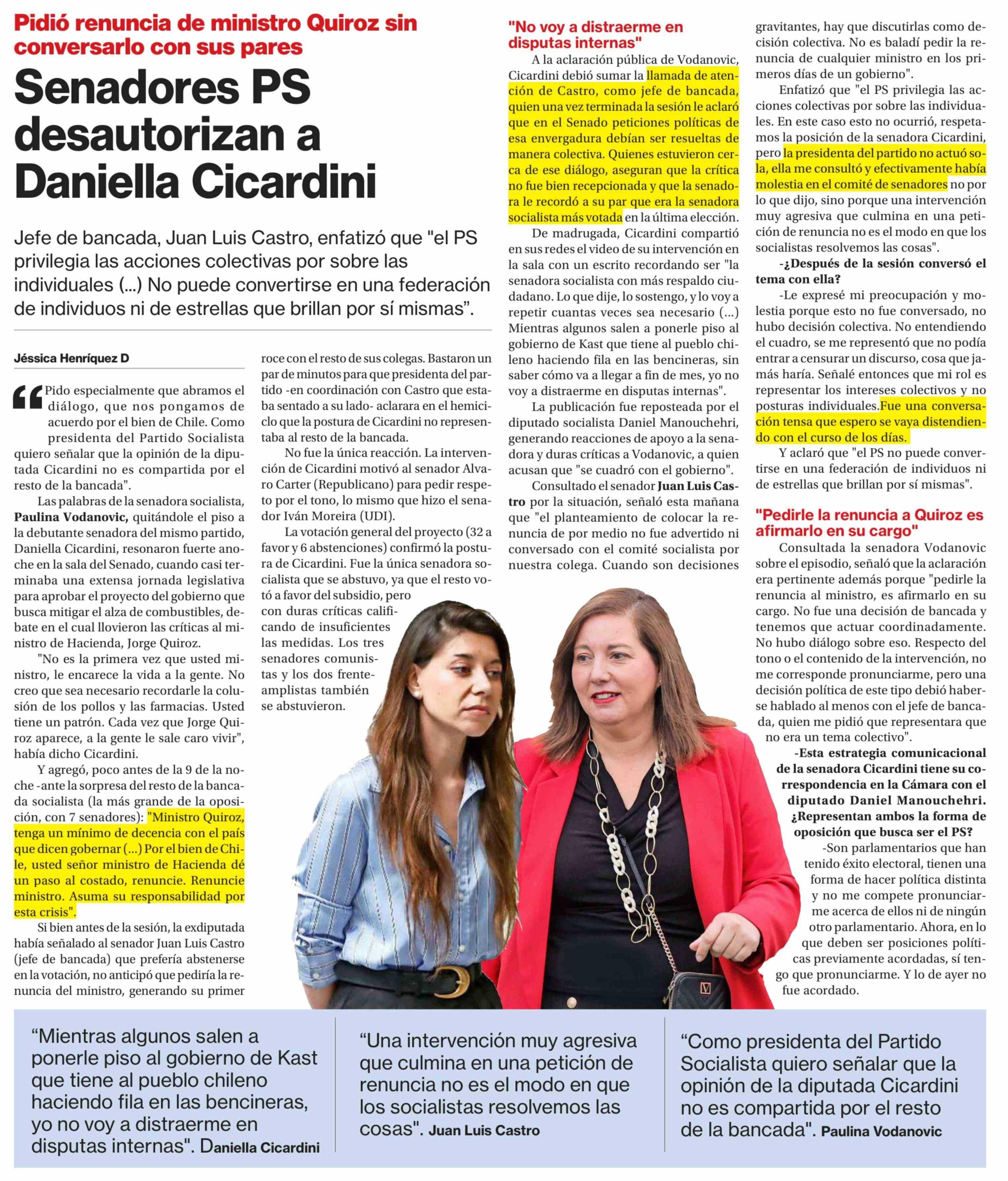 Senadores PS desautorizan a Daniella Cicardini