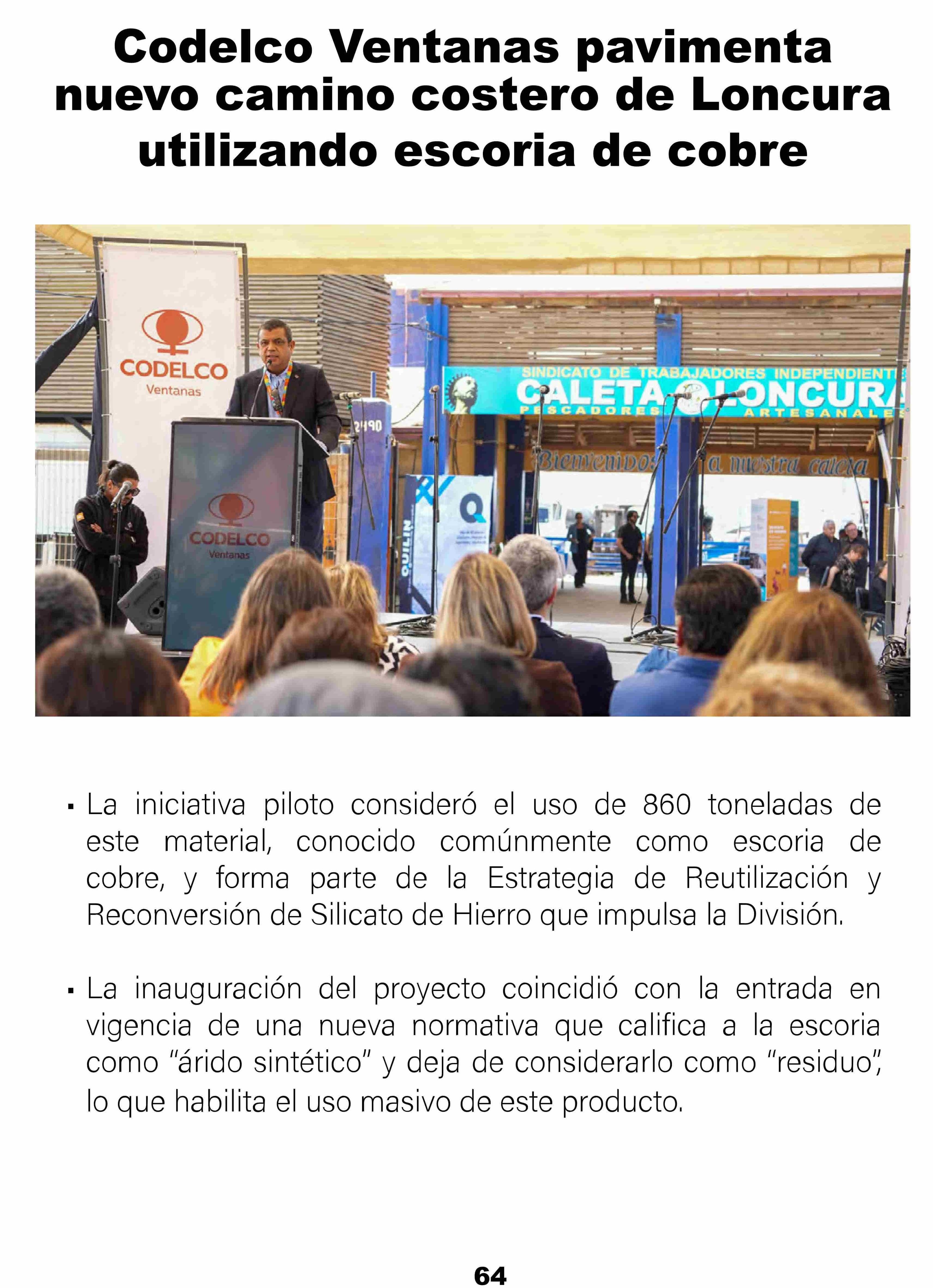 | Título: | Codelco Ventanas pavimenta nuevo camino costero de Loncura utilizando escoria de cobre |