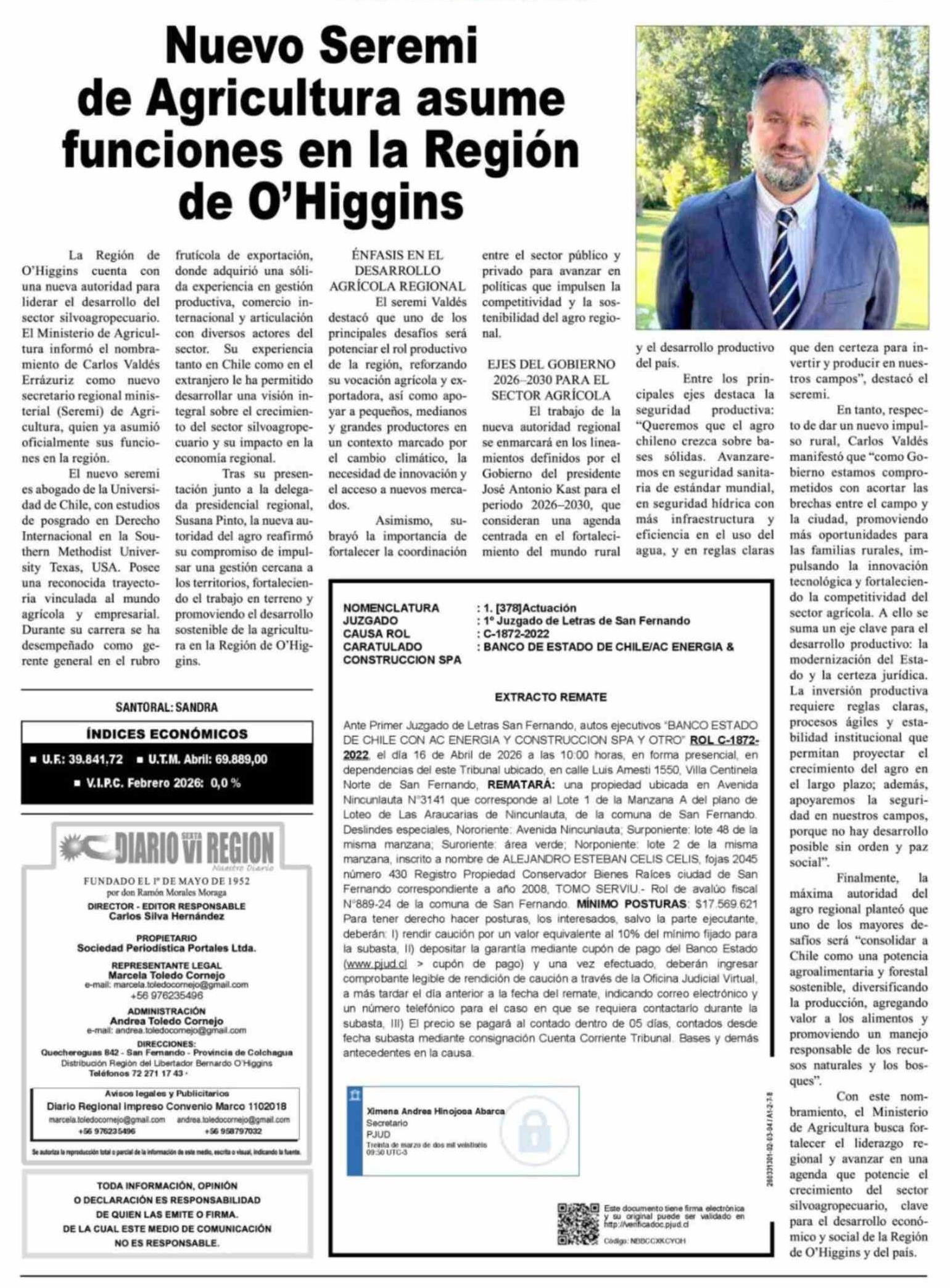 Nuevo Seremi de Agricultura asume funciones en la Región de O'Higgins
