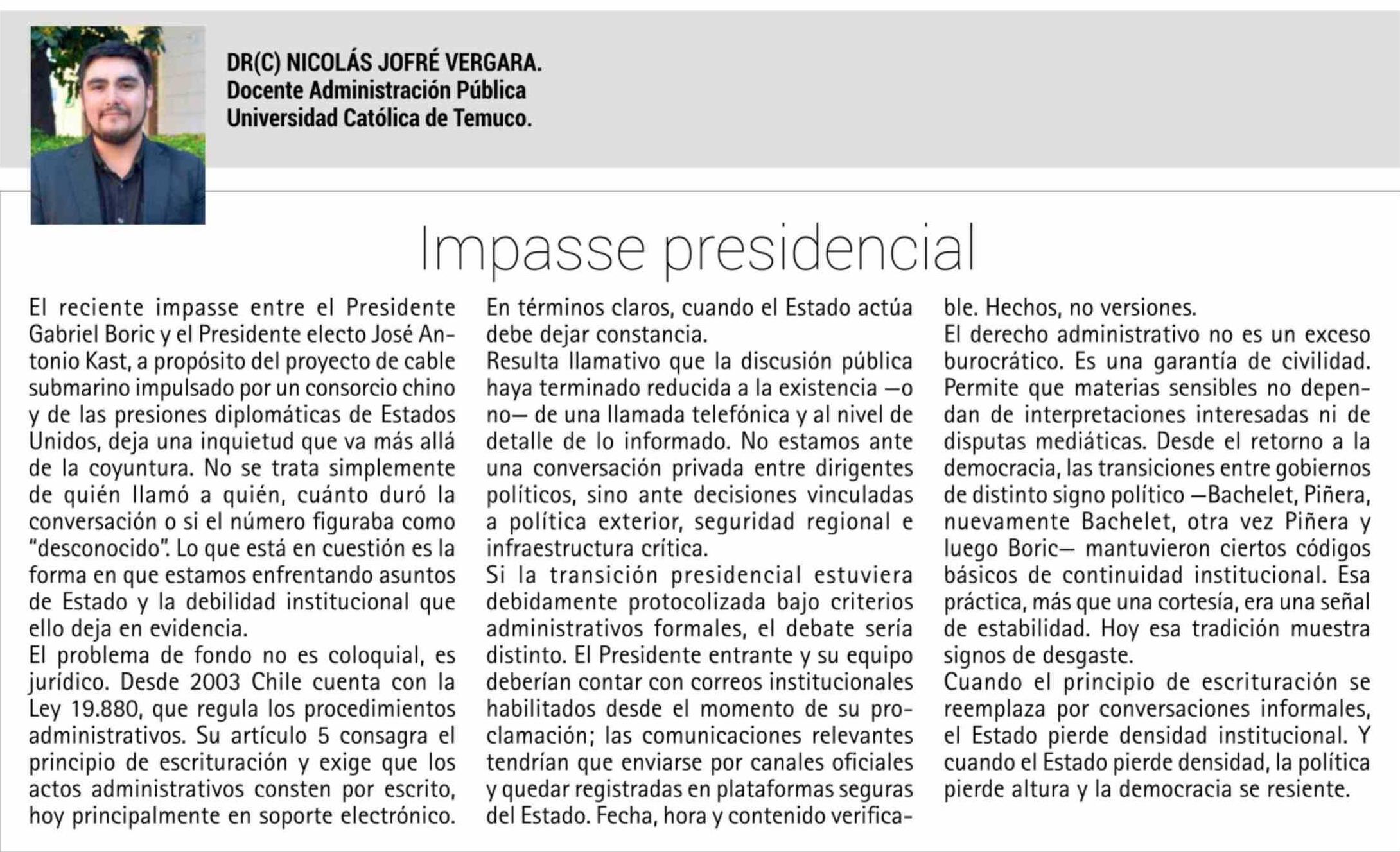Columnas de Opinión: Impasse presidencial