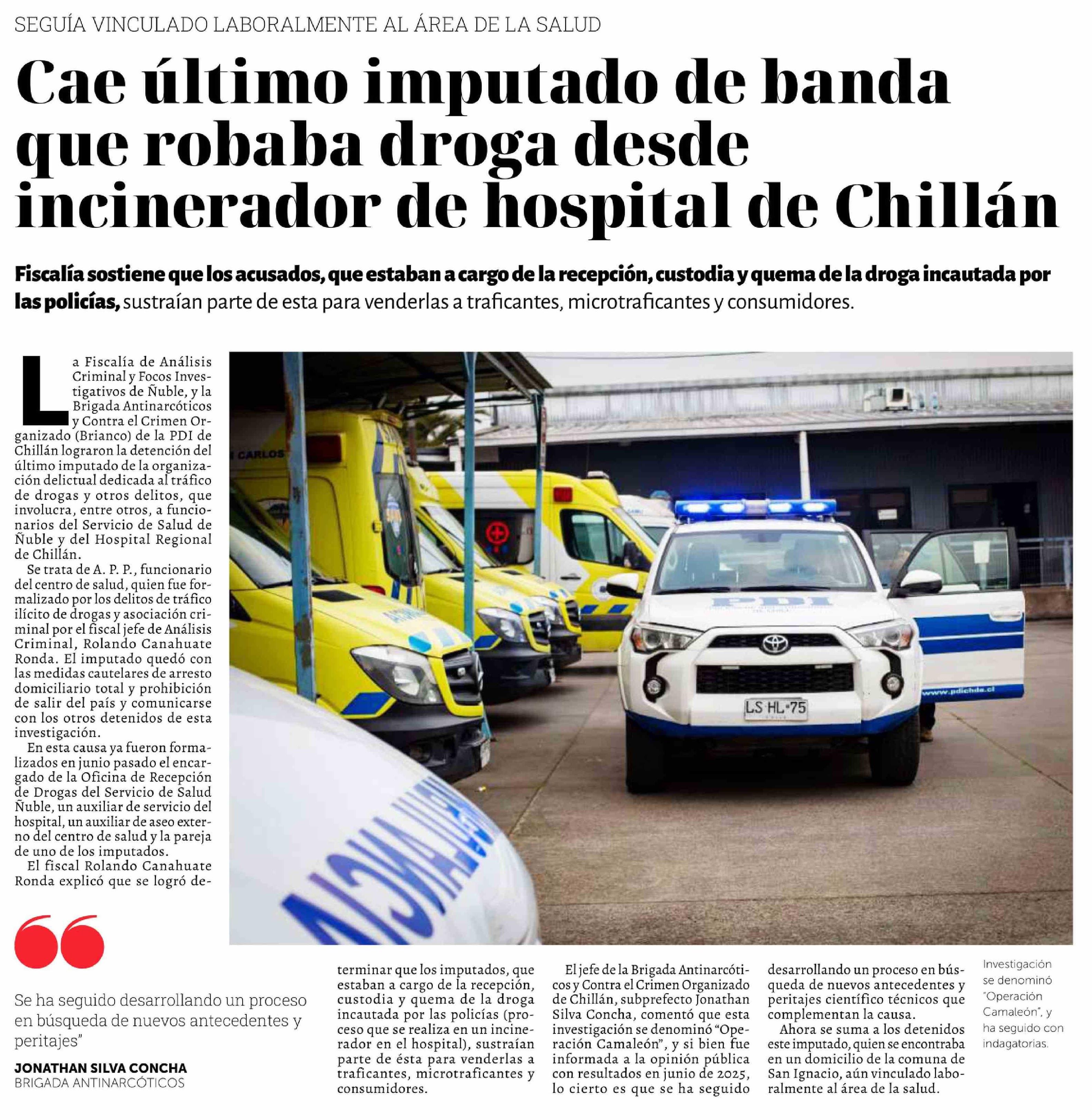 Cae último imputado de banda que robaba droga desde incinerador de hospital de Chillán