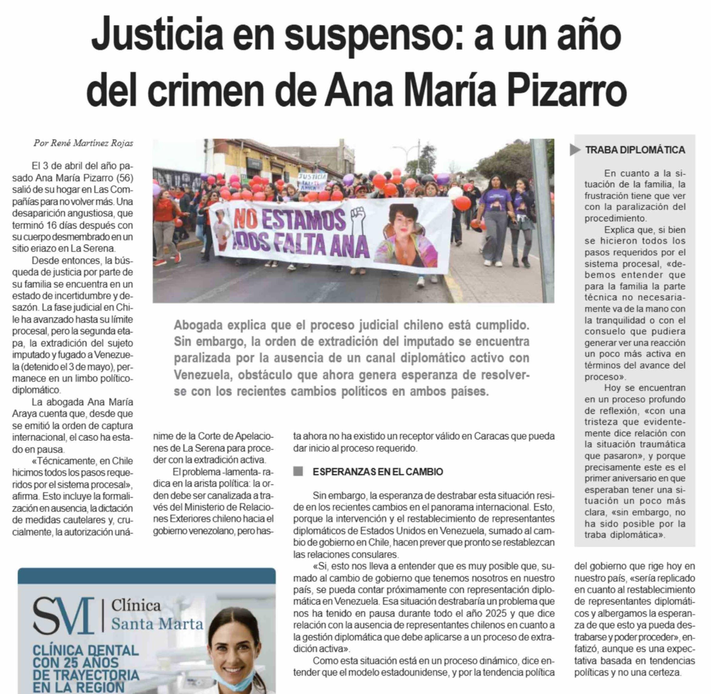 Justicia en suspenso: a un año del crimen de Ana María Pizarro