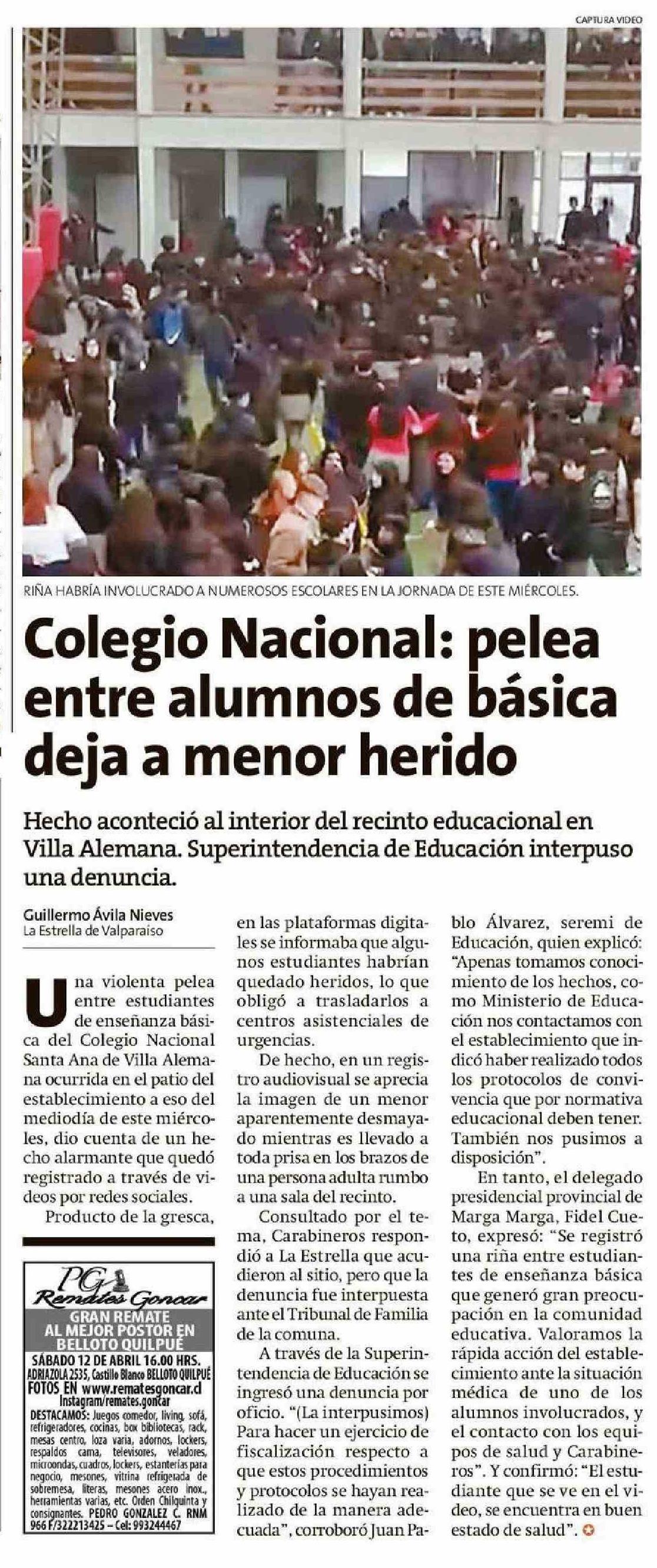 Colegio Nacional: pelea deja a menor herido entre alumnos de básica