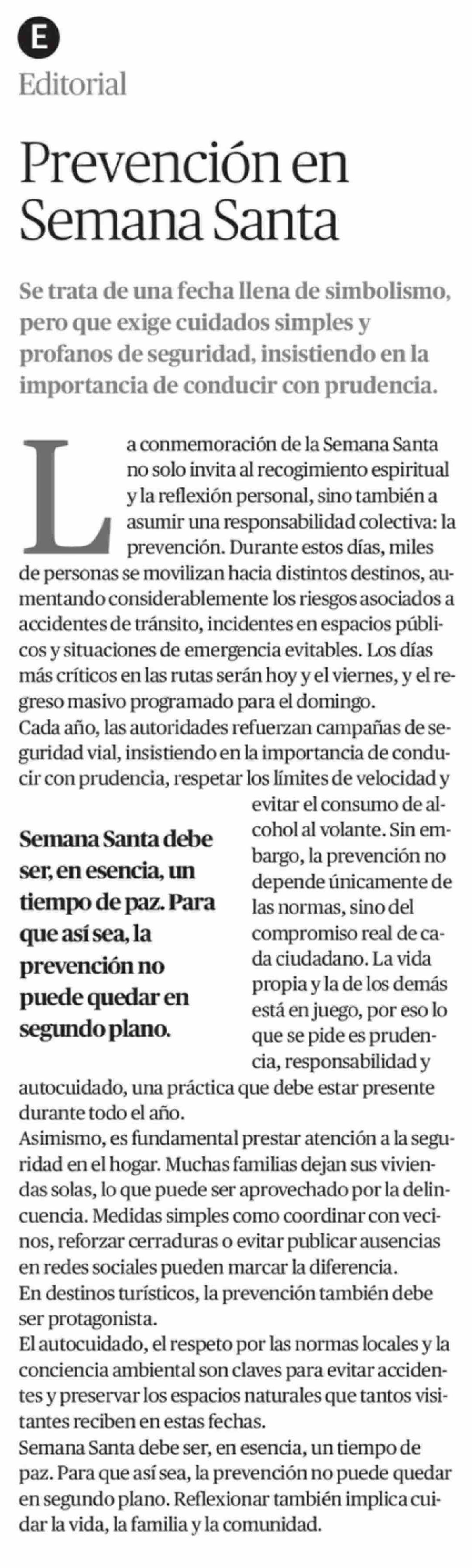 Editorial: Prevención en Semana Santa