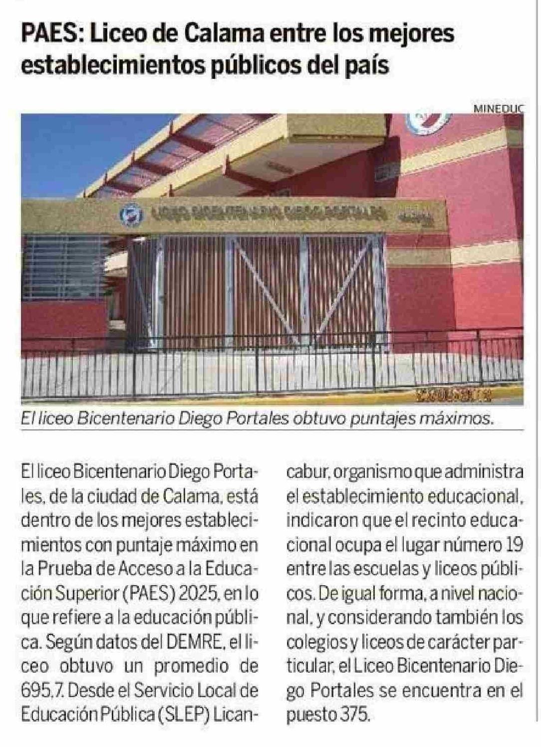 PAES: Liceo de Calama entre los mejores establecimientos públicos del país