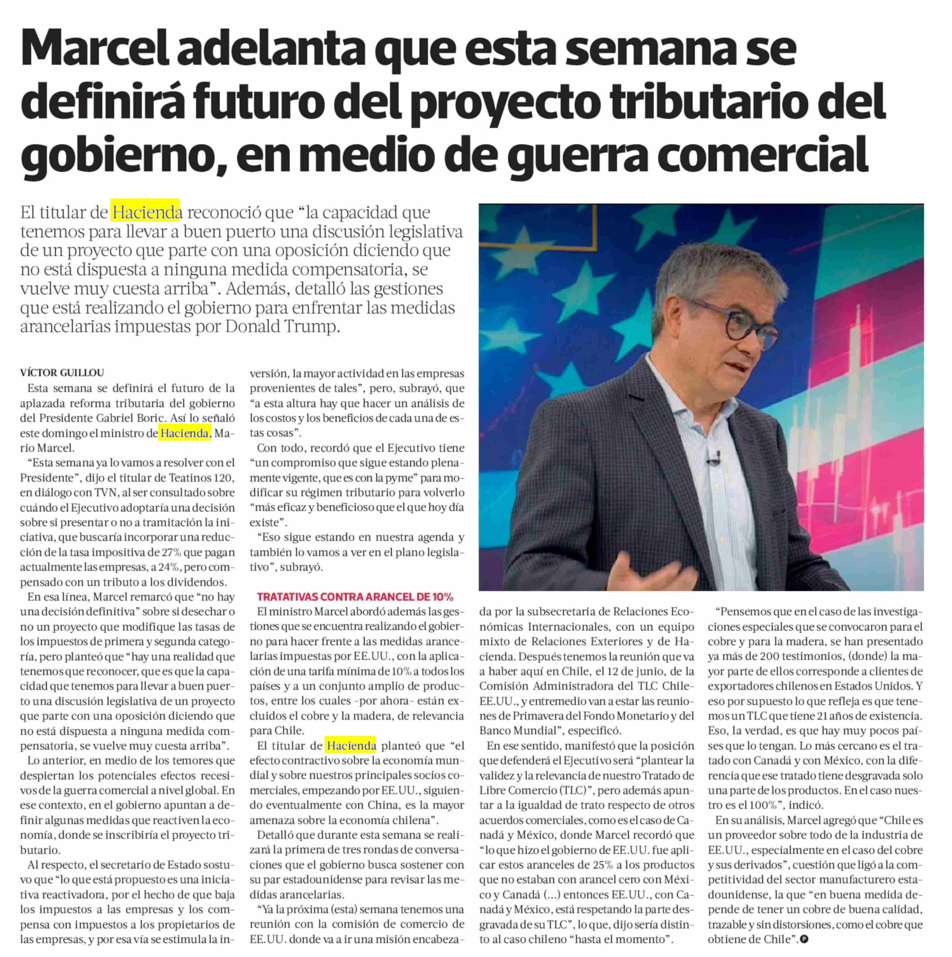 Marcel adelanta que esta semana se definirá futuro del proyecto tributario del gobierno, en medio de guerra comercial