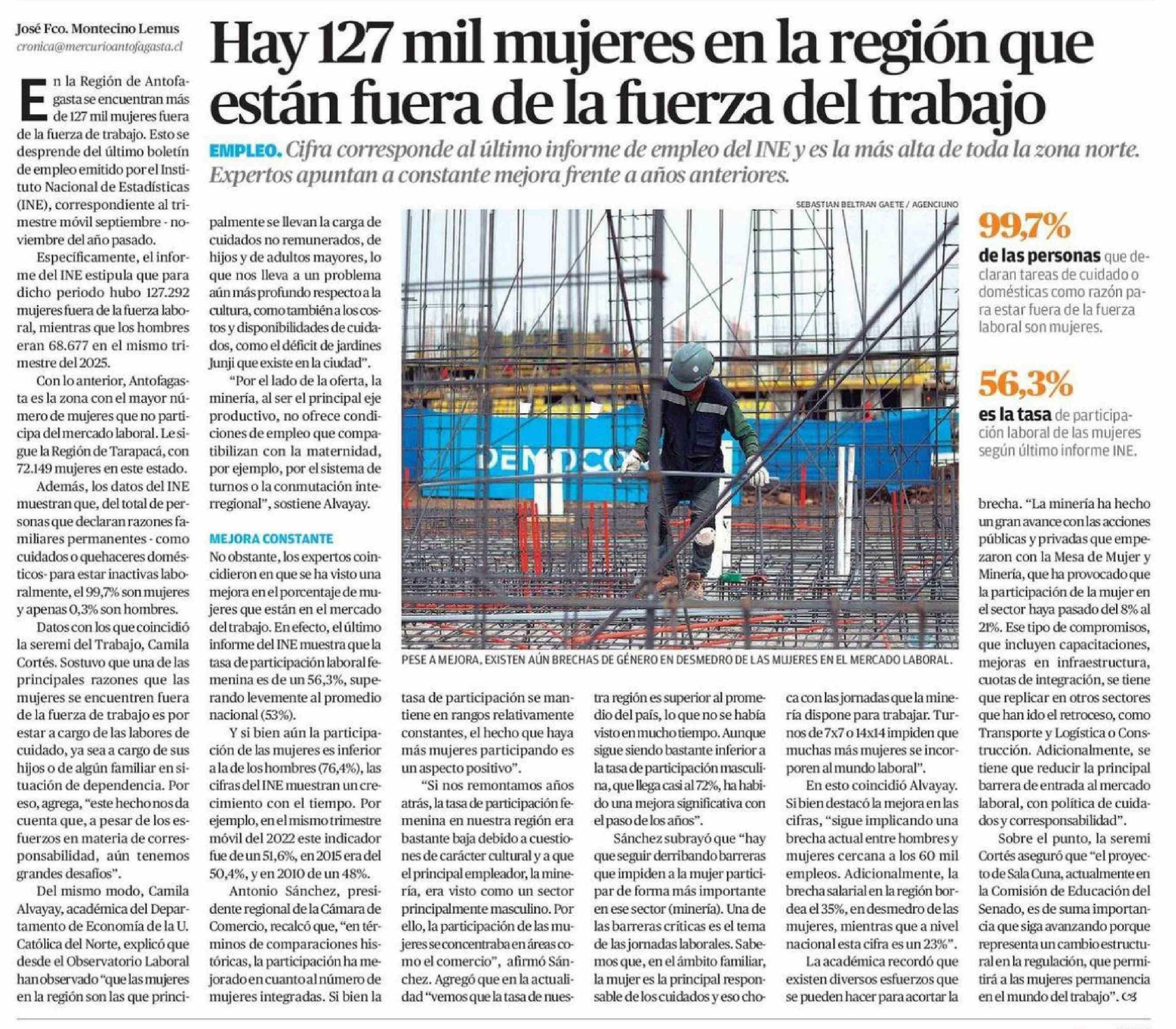 Hay 127 mil mujeres en la región que están fuera de la fuerza del trabajo