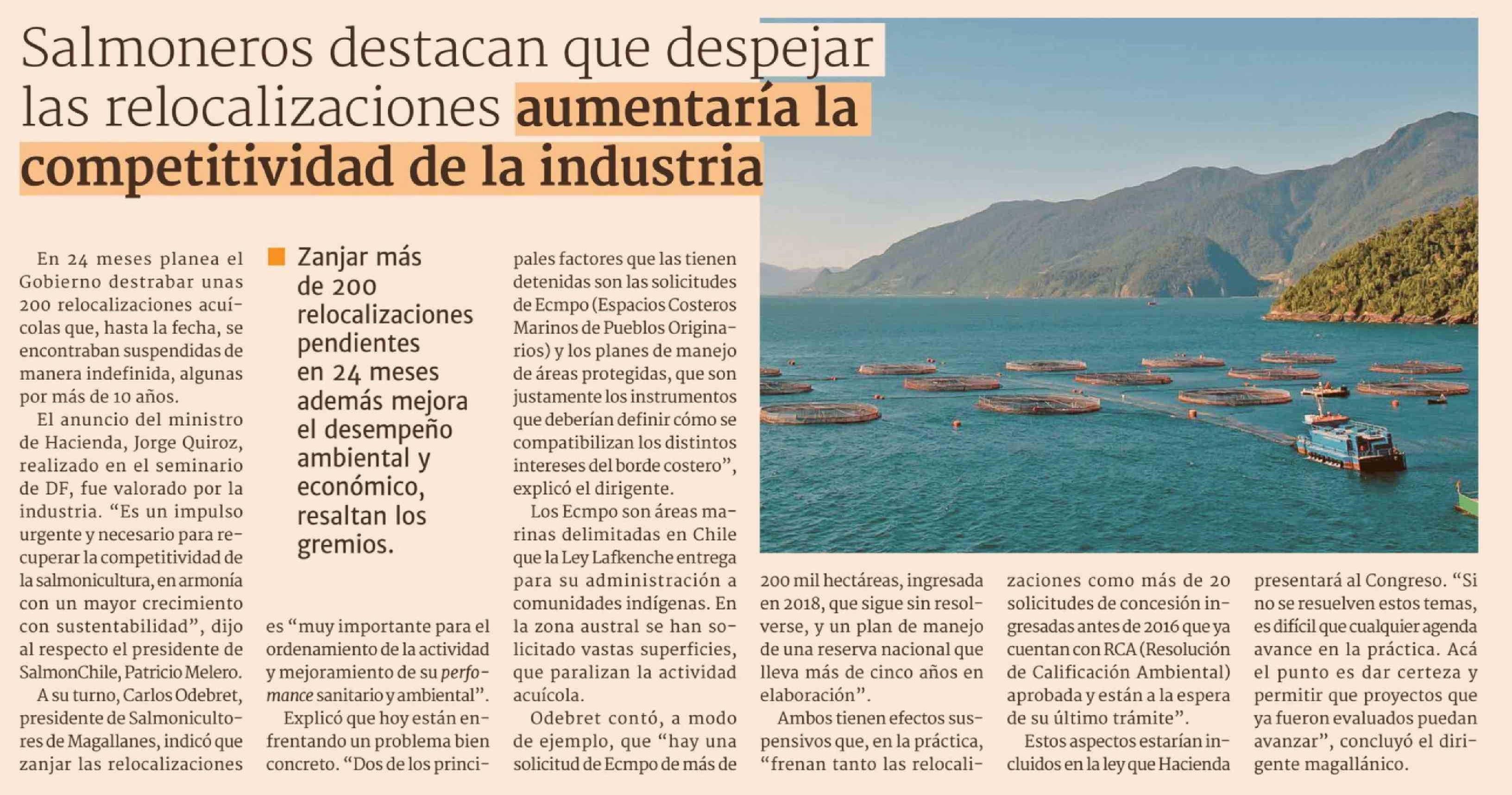 Salmoneros destacan que despejar las relocalizaciones aumentaría la competitividad de la industria