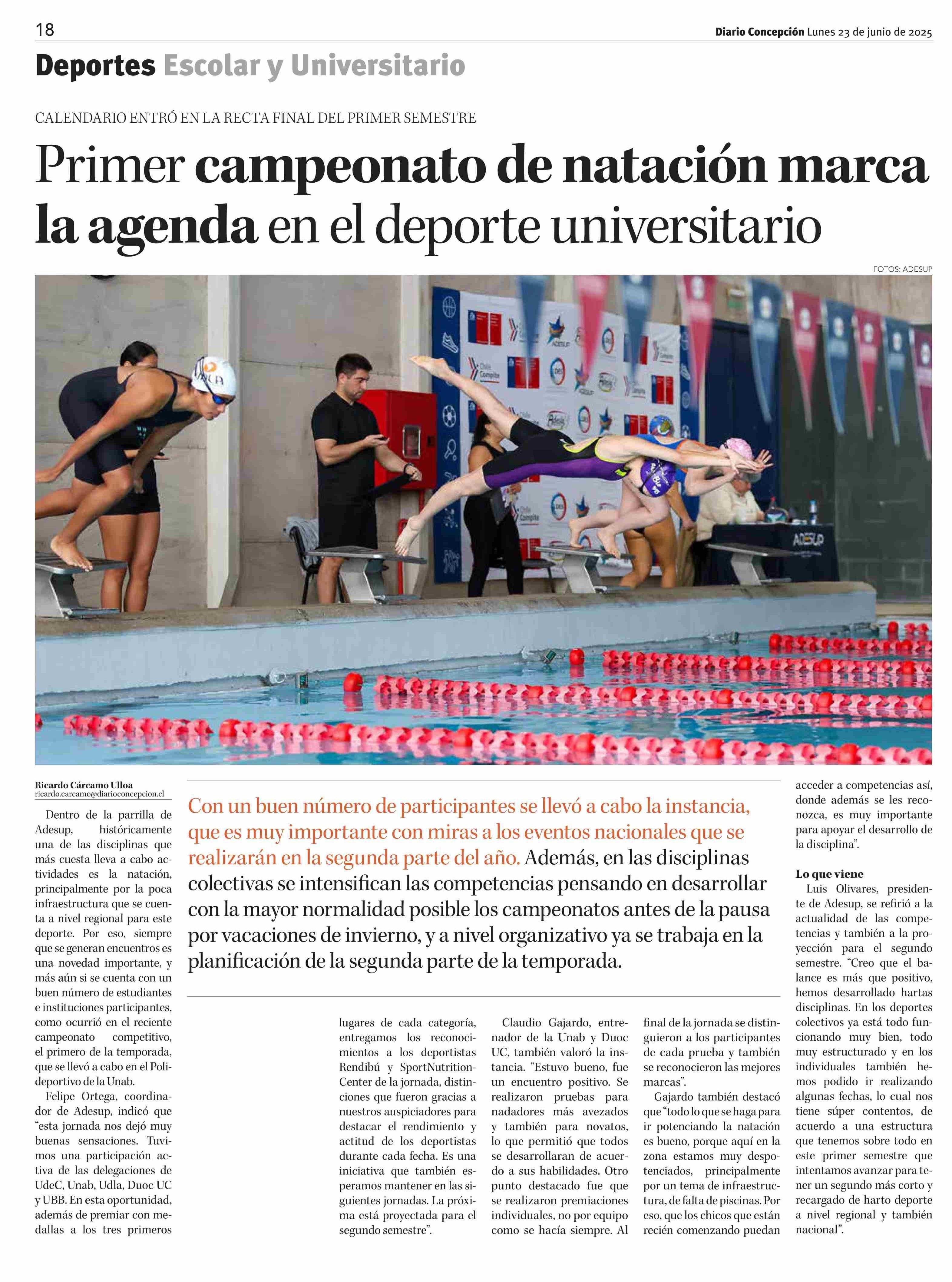Primer campeonato de natación marca la agenda en el deporte universitario
