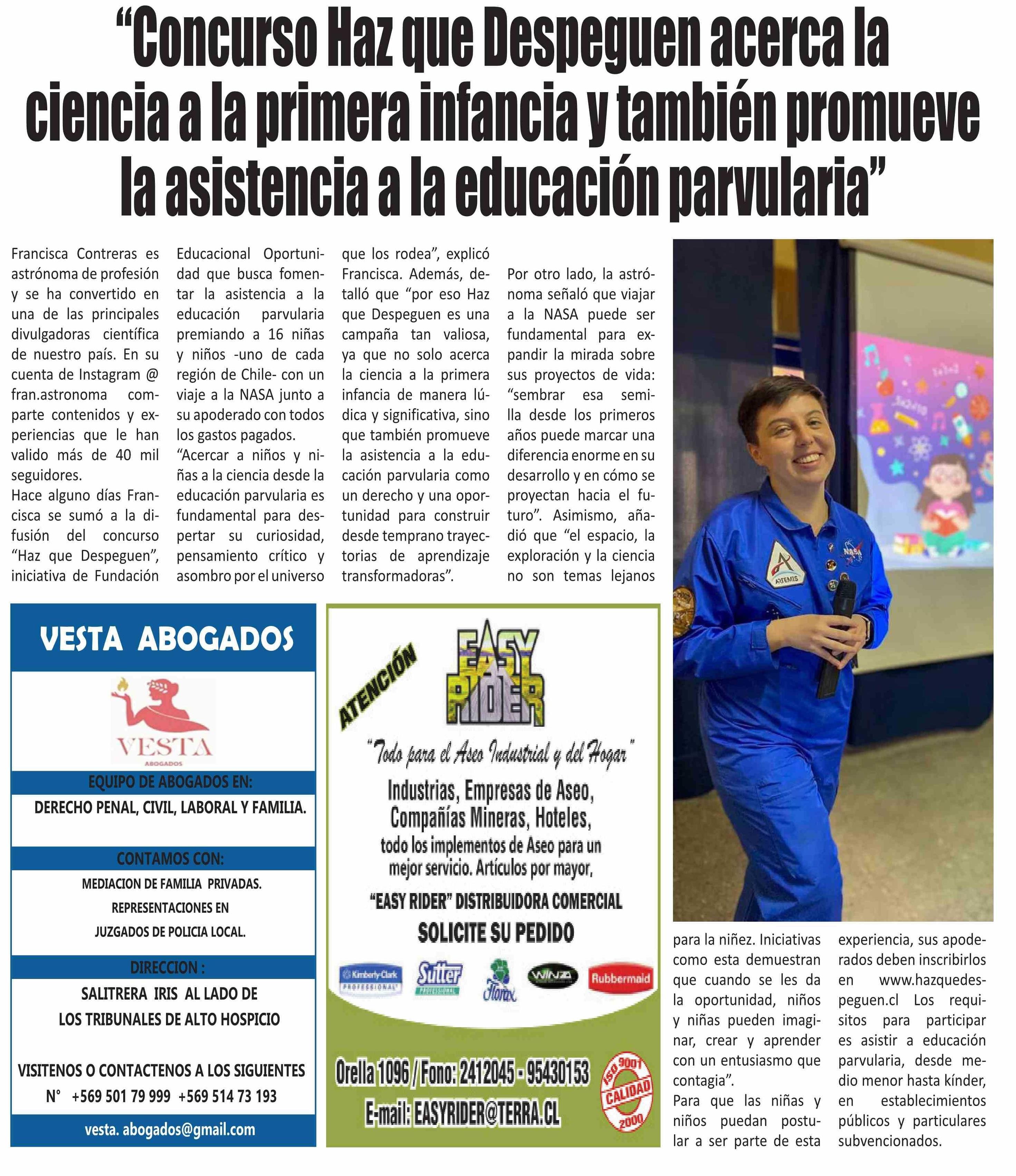 “Concurso Haz que Despeguen acerca la ciencia a la primera infancia y también promueve la asistencia a la educación parvularia”