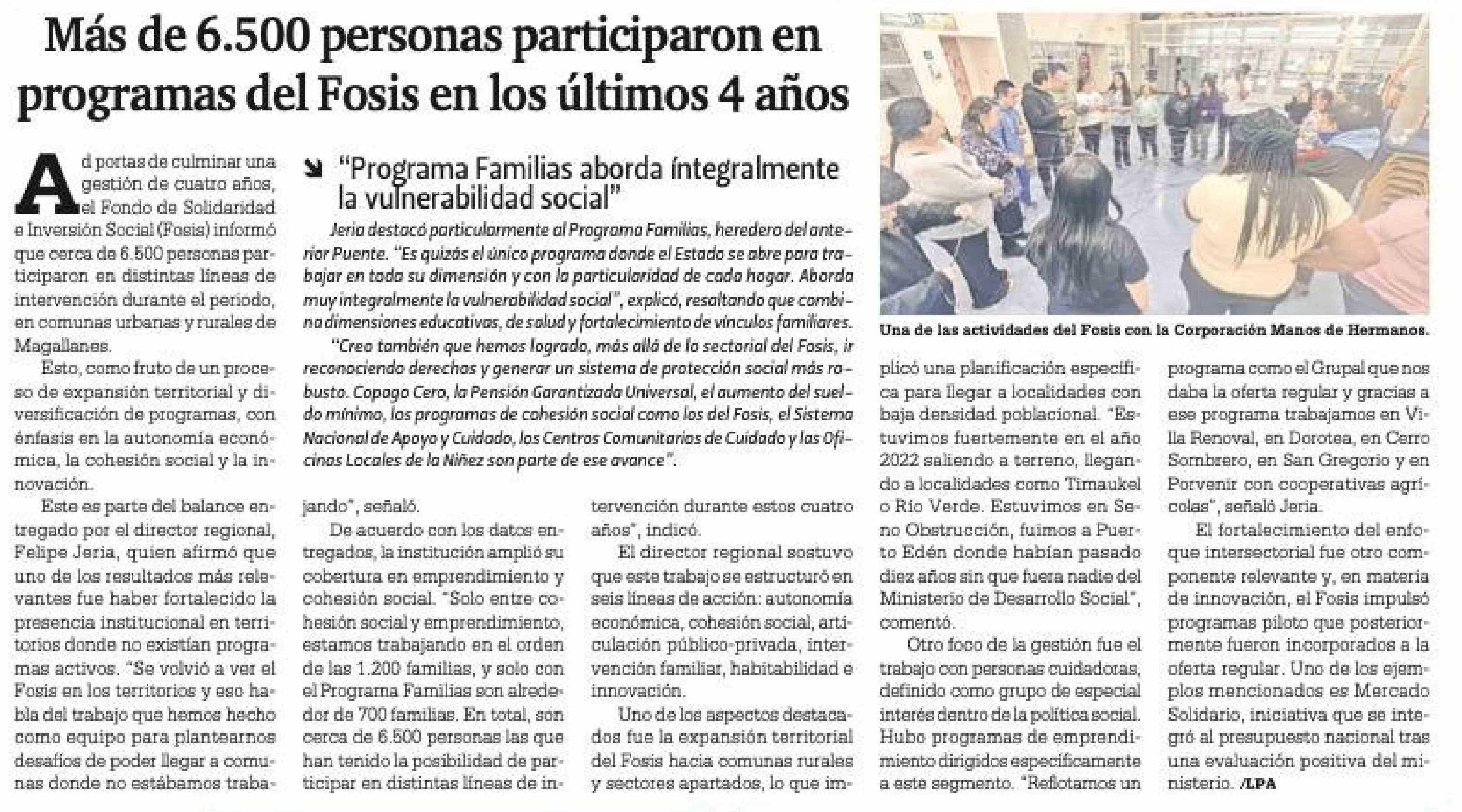 Más de 6.500 personas participaron en programas del Fosis en los últimos 4 años