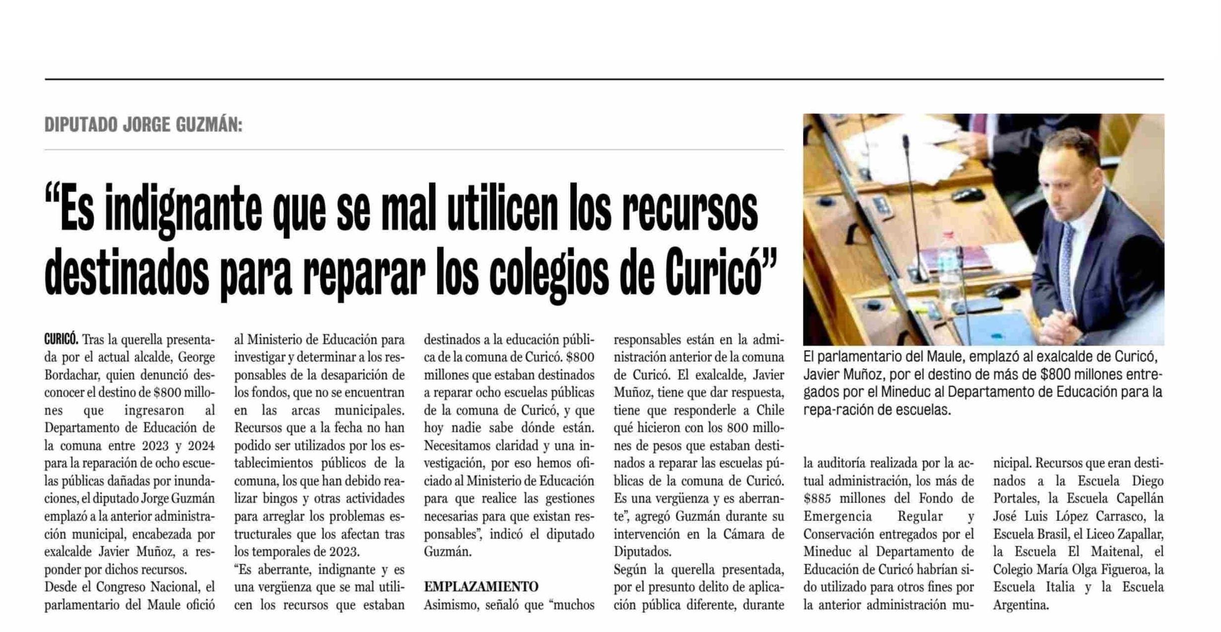 “Es indignante que se mal utilicen los recursos destinados para reparar los colegios de Curicó”