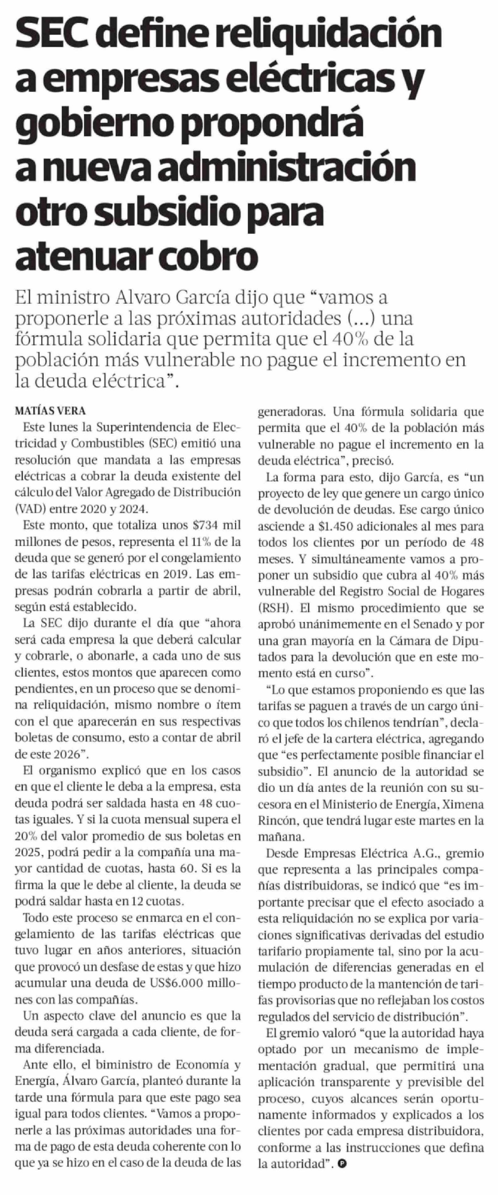 SEC define reliquidación a empresas eléctricas y gobierno propondrá a nueva administración otro subsidio para atenuar cobro
