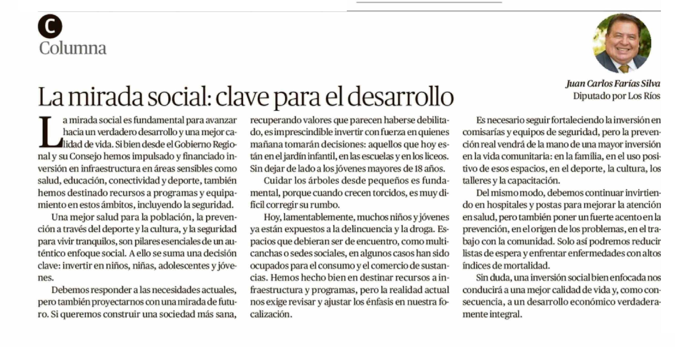 COLUMNAS DE OPINIÓN: La mirada social, clave para el desarrollo