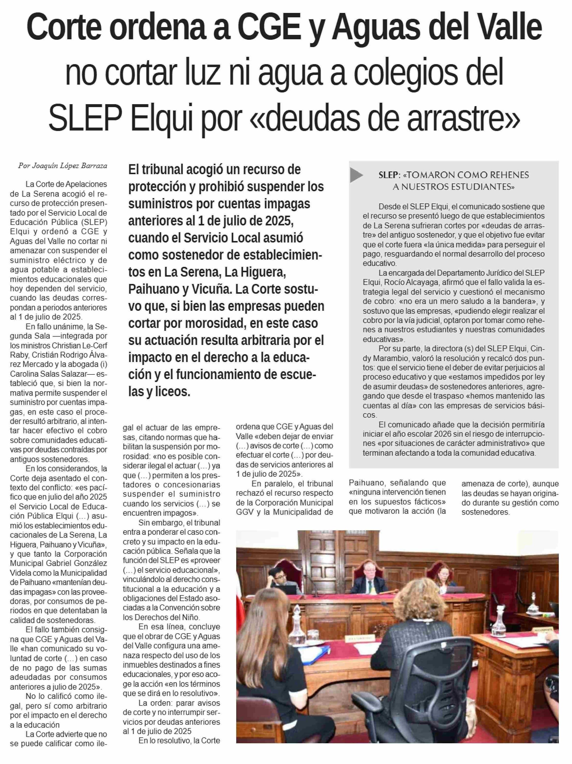 Corte ordena a CGE y Aguas del Valle no cortar luz ni agua a colegios del SLEP Elqui por «deudas de arrastre»