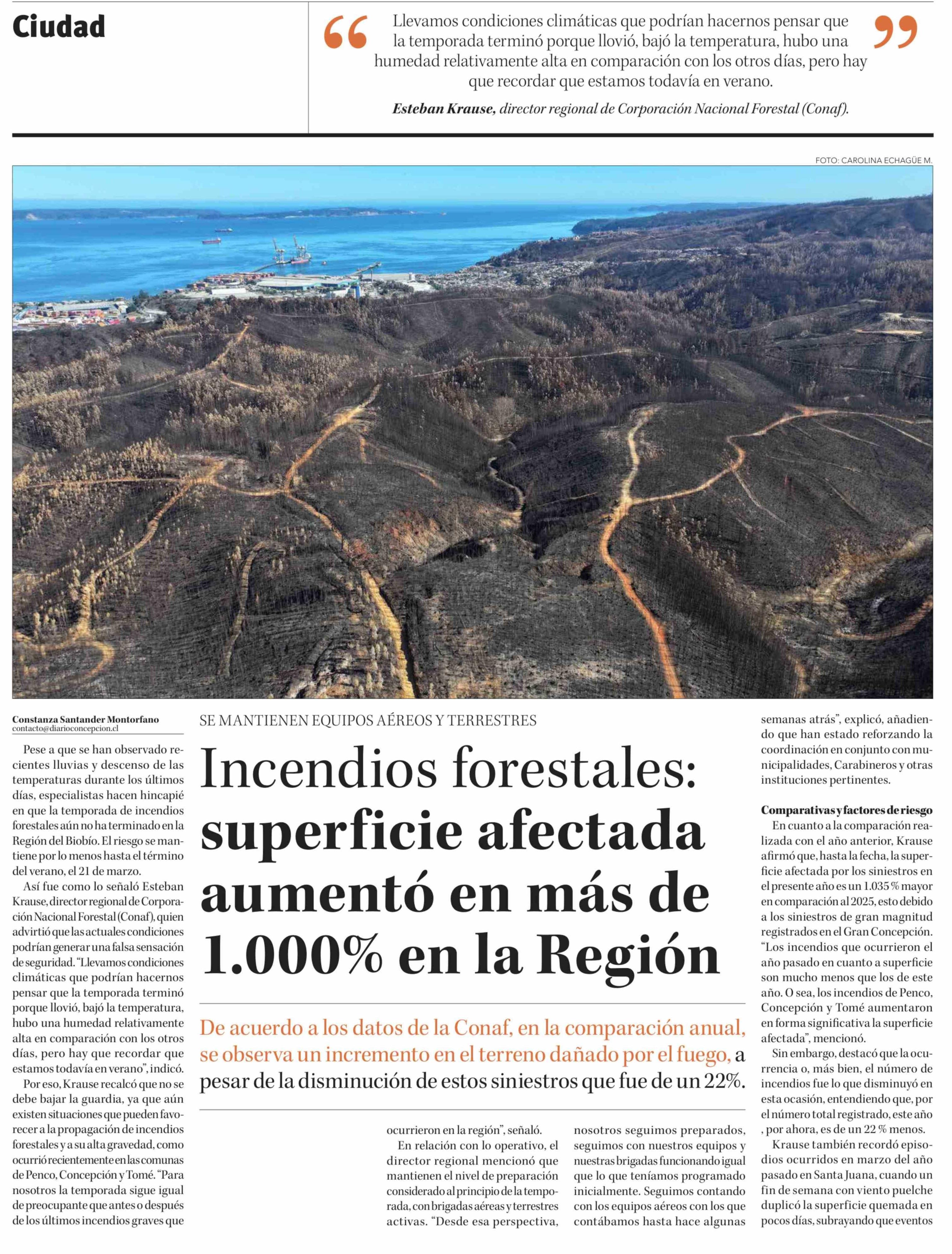 Incendios forestales: superficie afectada aumentó en más de 1.000% en la Región