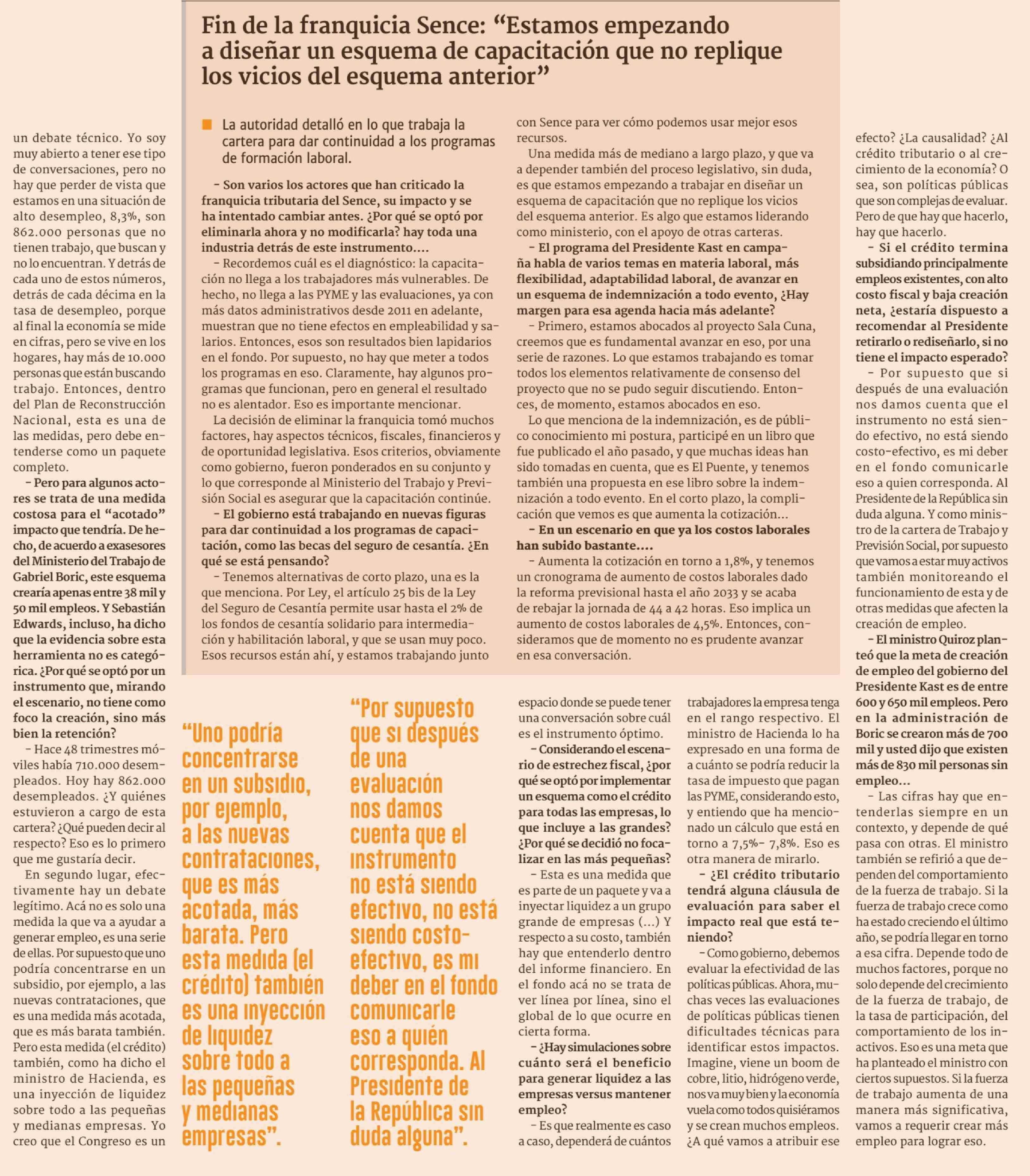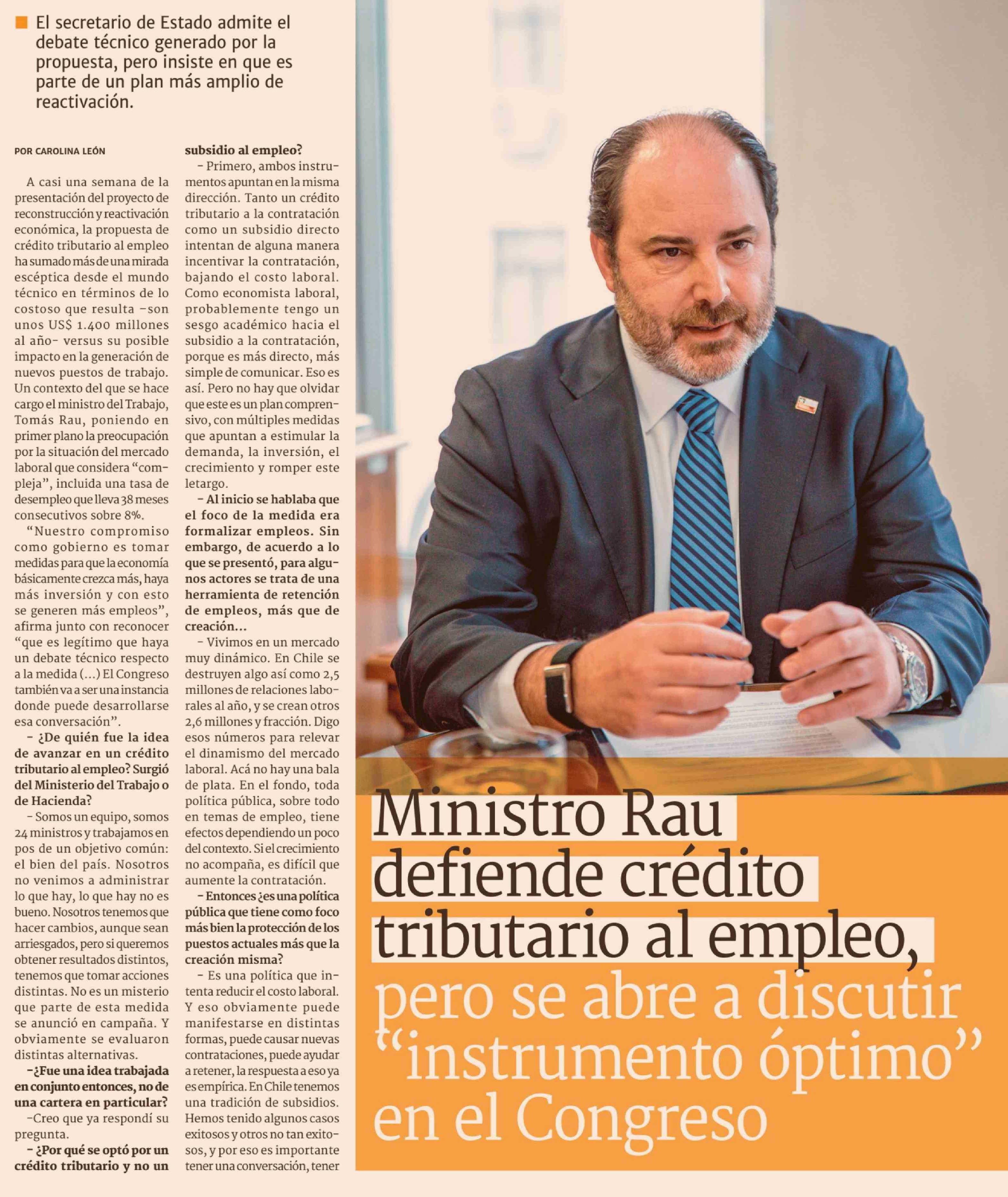 Ministro Rau defiende crédito tributario al empleo, pero se abre a discutir instrumento óptimo" en el Congreso