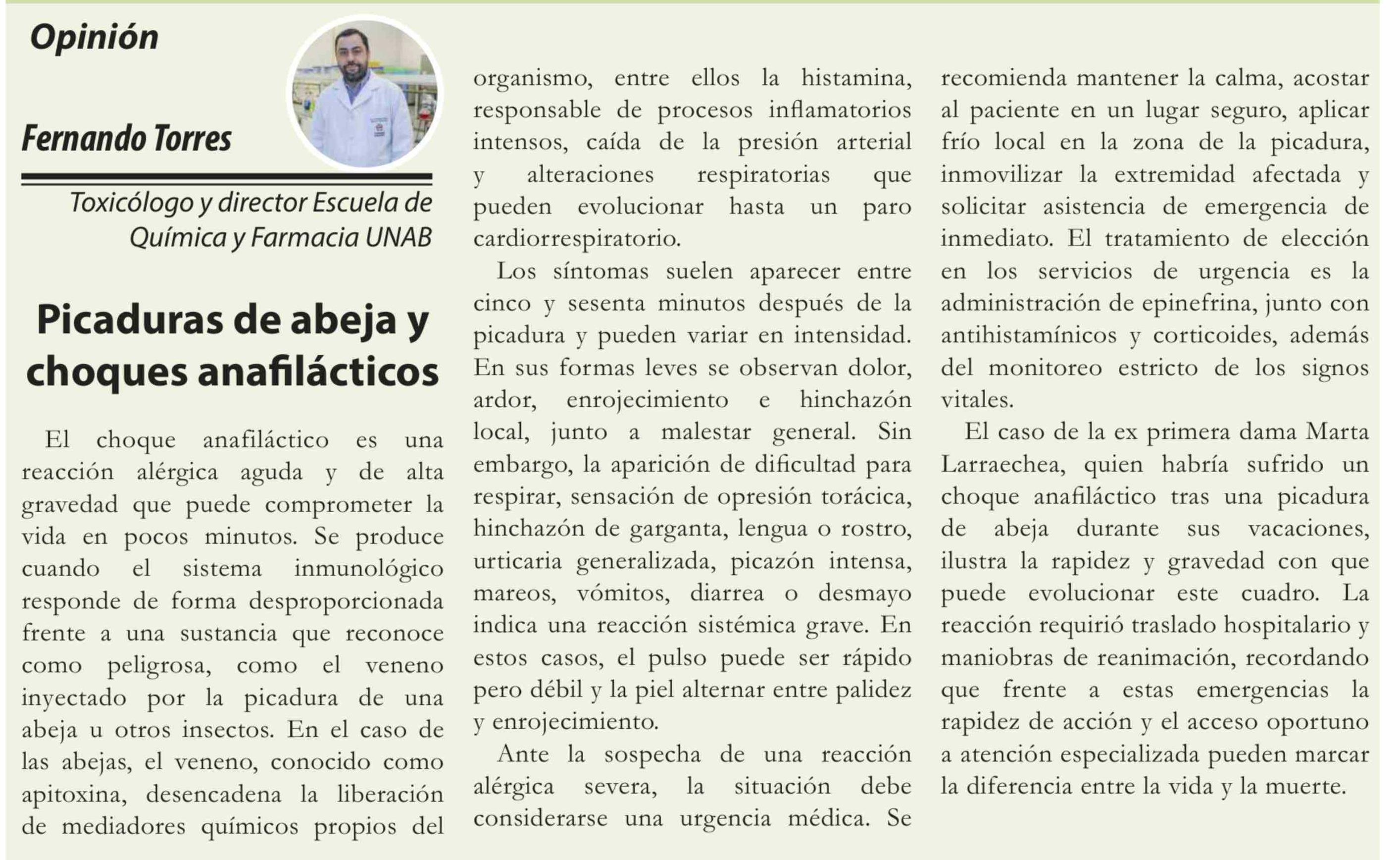 Columnas de Opinión: Picaduras de abeja y choques anafilácticos