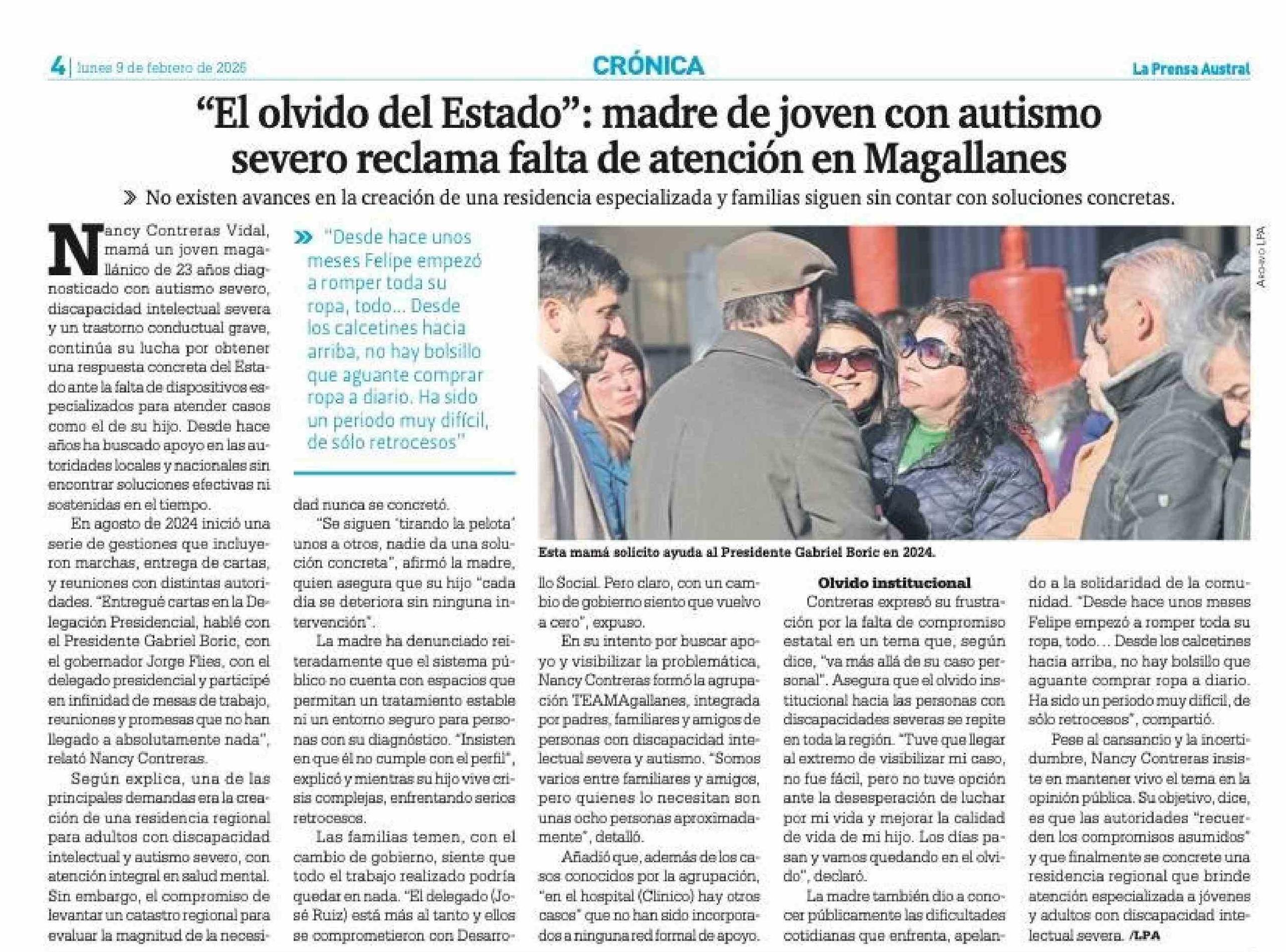 “El olvido del Estado”: madre de joven con autismo severo reclama falta de atención en Magallanes