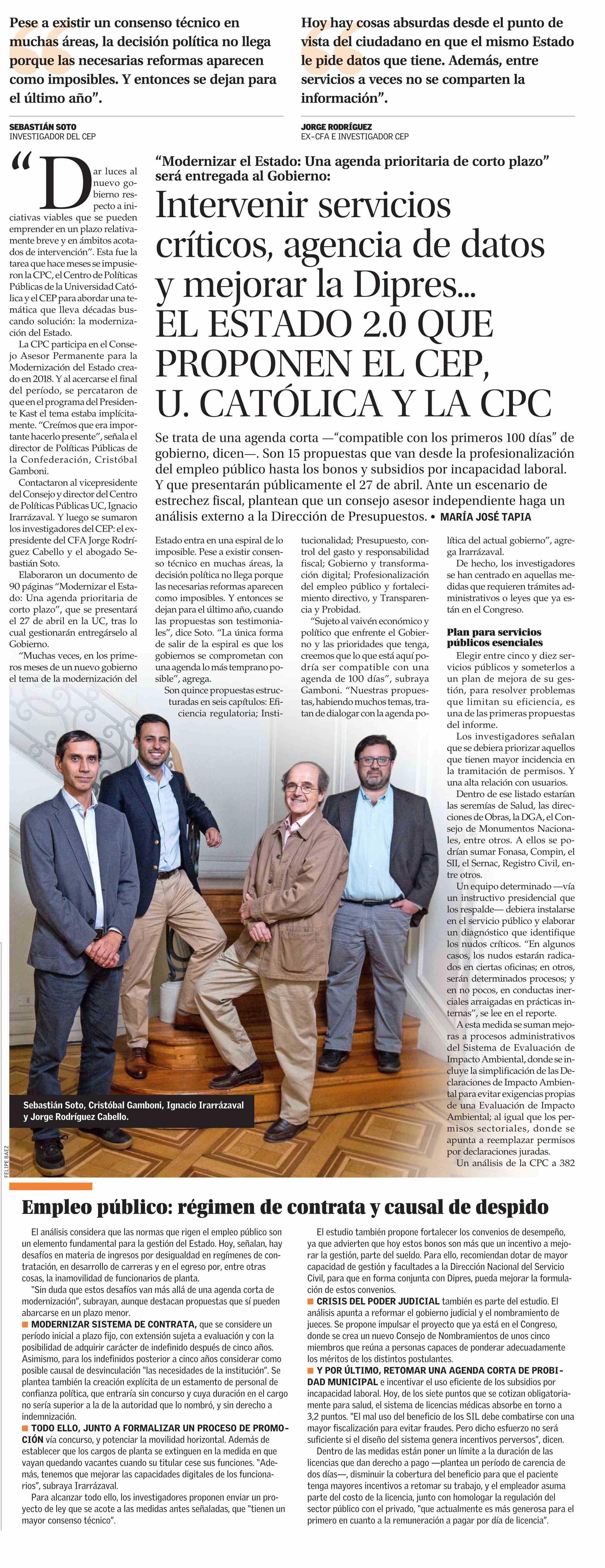 Título: Intervenir servicios críticos, agencia de datos y mejorar la Dipres... EL ESTADO 2.0 QUE PROPONEN EL CEP, U. CATOLICA Y LA CPC
