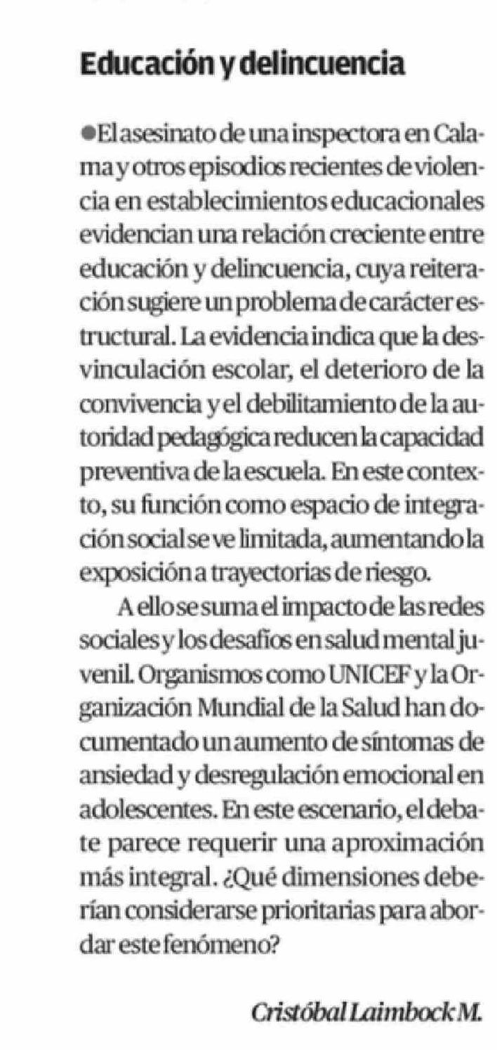 CARTAS: Educación y delincuencia
