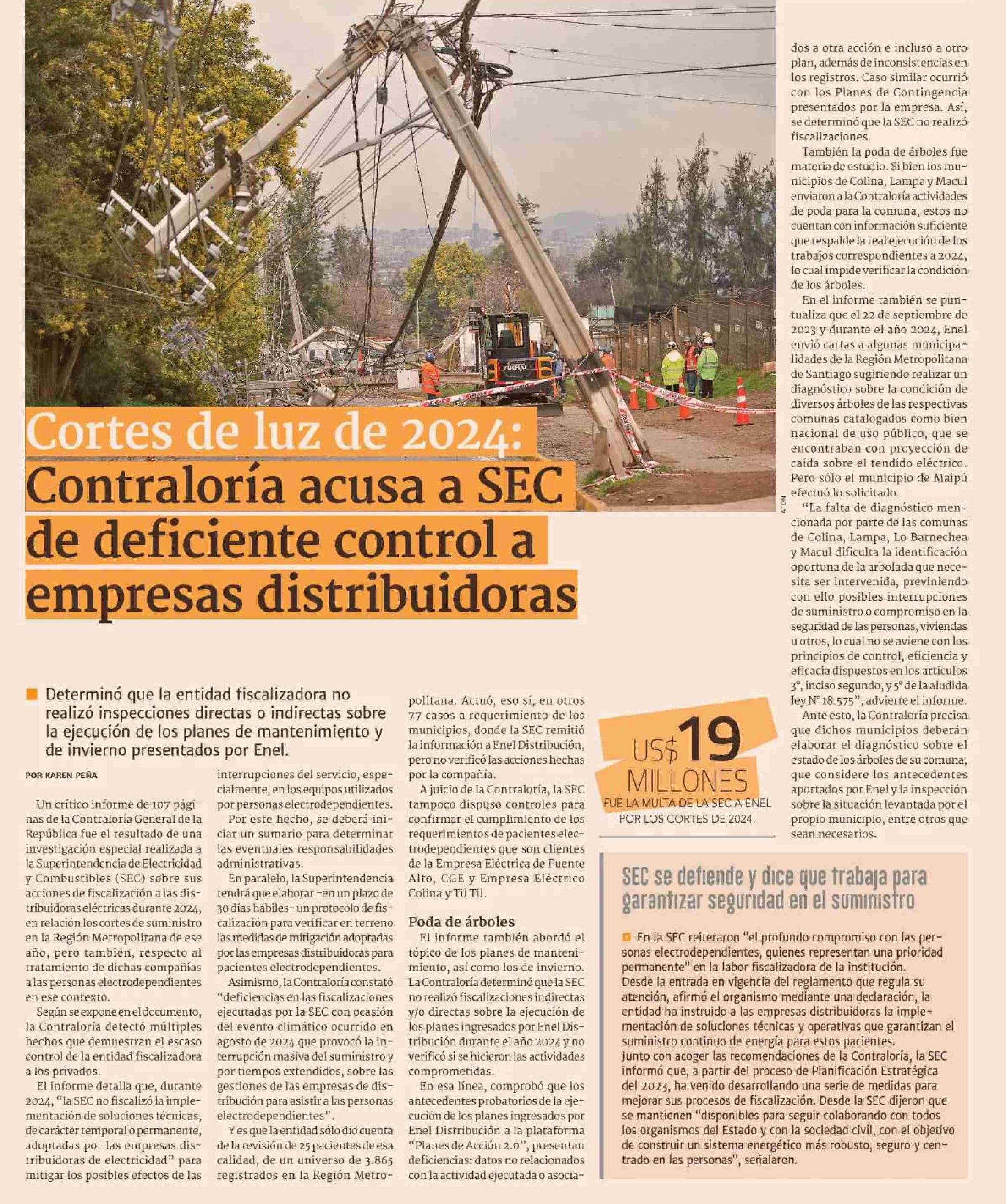 Cortes de luz de 2024: Contraloria acusa a SEC. de deficiente control a empresas distribuidoras
