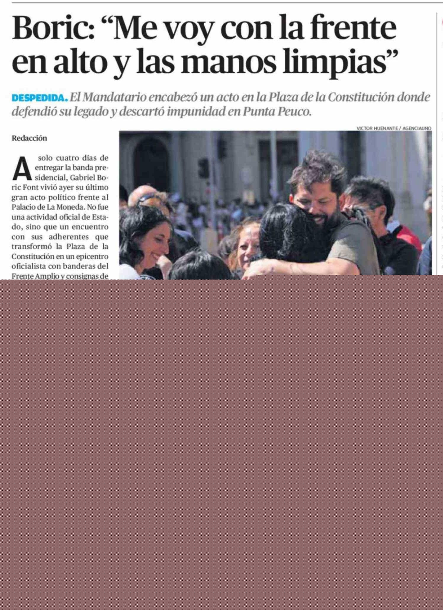 Título: Boric: "Me voy con la frente en alto y las manos limpias"